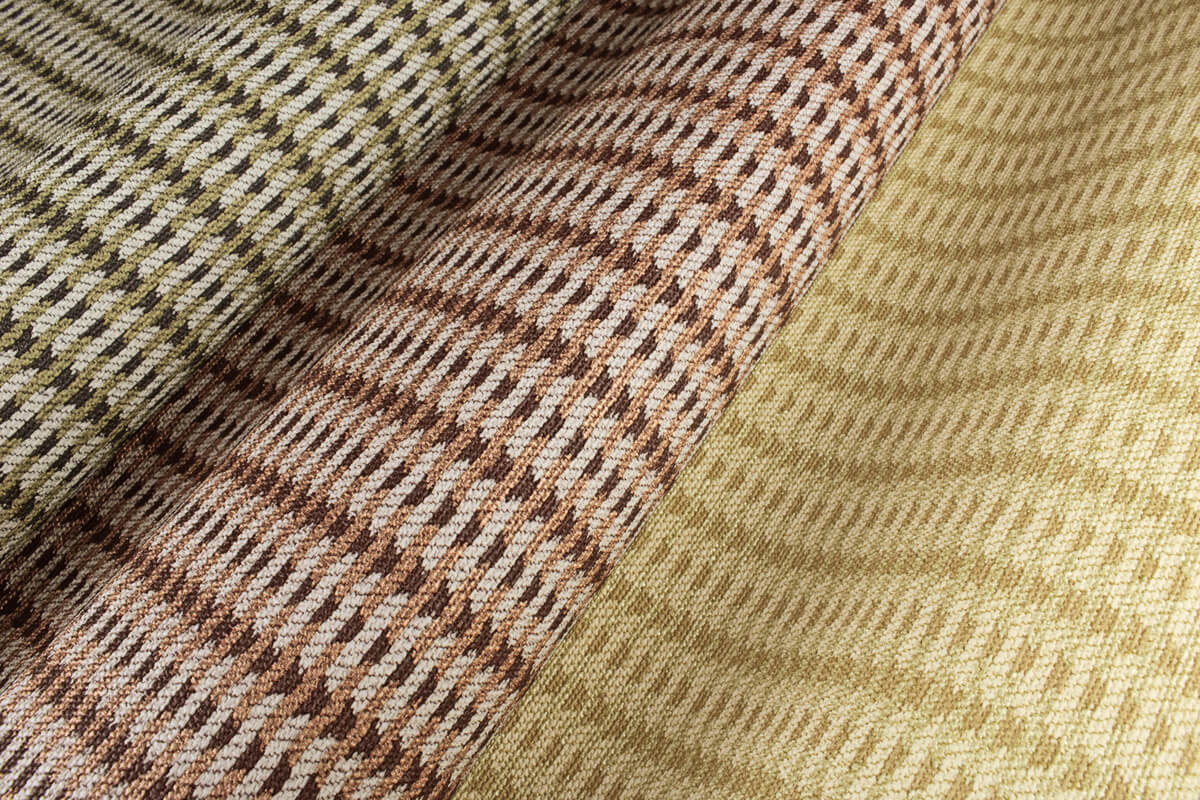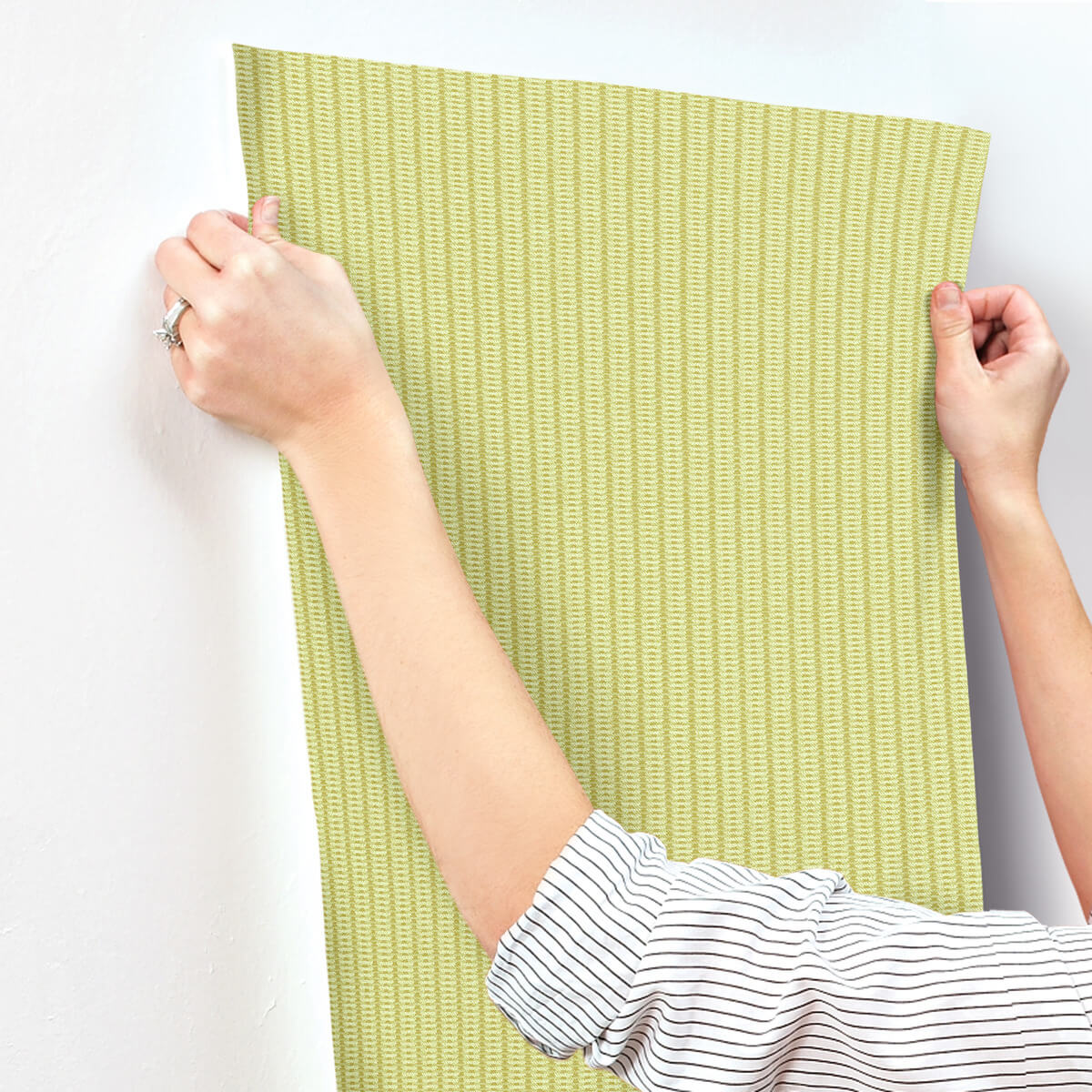Mozart's woven details enhance the intricate striped design, adding a rhythmic element to the overall pattern. Seen here in golden yellow, cream, and palest green. This Mozart Wallpaper measures approximately 39.3 inches wide by 32.8 feet long, measuring approximately 107.4 square feet per roll. The passion for decoration is the point of contact between the two realities: an intense and profitable, passionate and spontaneous creative comparison where the emotion of the chromatic elements is intertwined with research into innovative materials and printing techniques. The Missoni Wallcoverings 05 wallpaper collection was born from this vision: an innovative proposal, which harmonizes shades, geometries and nature, in a kaleidoscope of designs, materials and colors interpreted with a technique with a strong innovative value.