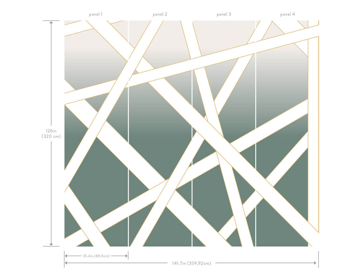 - Roll Size: Mural size is 141.73" W x 125.98" H (4 Panels)