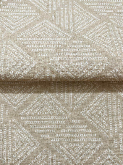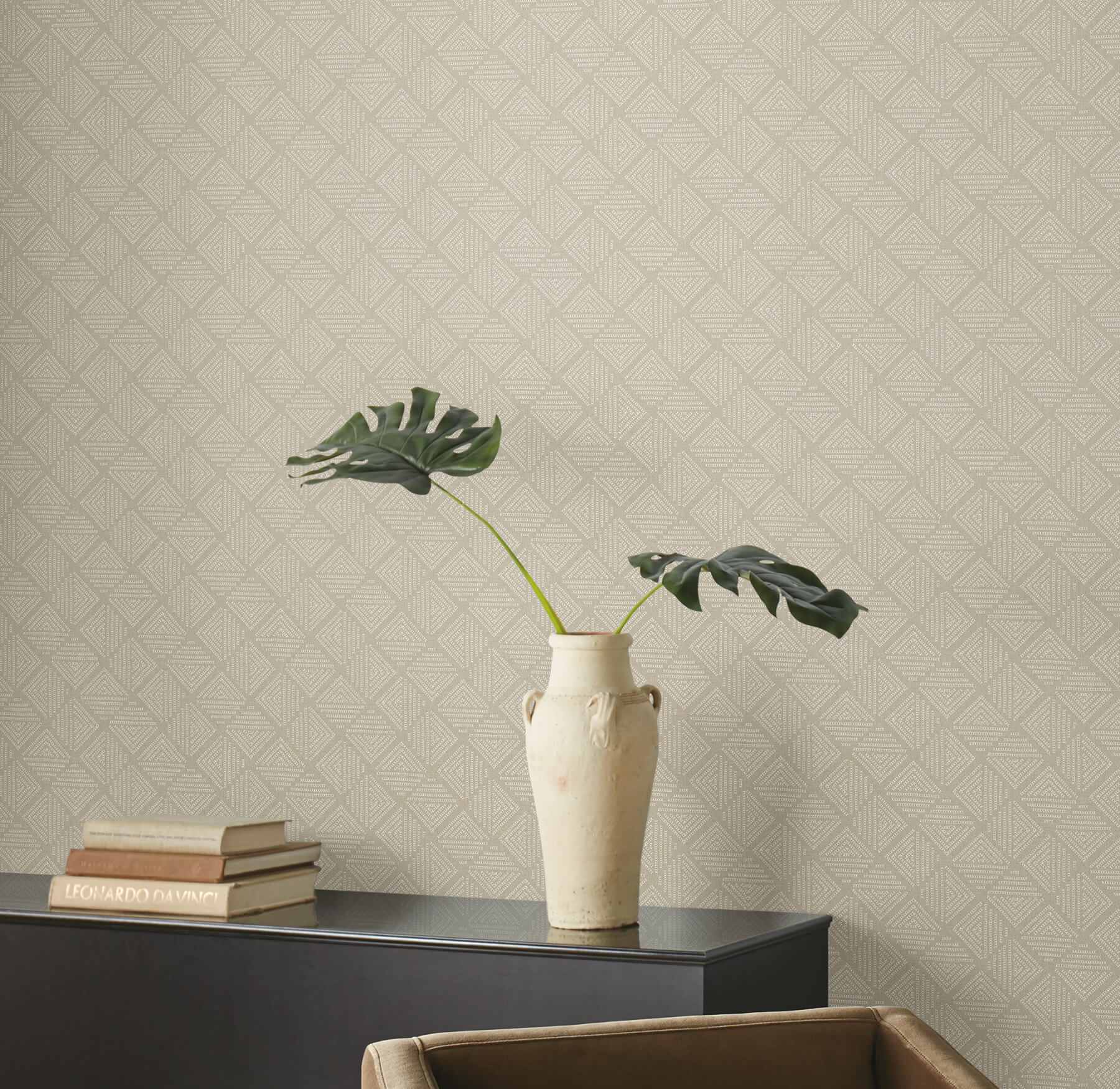 Intricate hand-embroidered diamonds create an organic, yet tailored, look. Seen here in light brown and cream. This Center Square Wallpaper measures approximately 54 inches wide by 90 feet long, measuring approximately 405 square feet per roll. Inspired by natural textures and architectural details, Magnolia’s collection is thoughtfully curated to tell the story of home with warmth, personality, and charm. Each piece is uniquely designed and crafted with care using high-quality, sustainable materials that are both durable and easy to clean. Find a style that speaks to you – and bring any wall in your space to life.