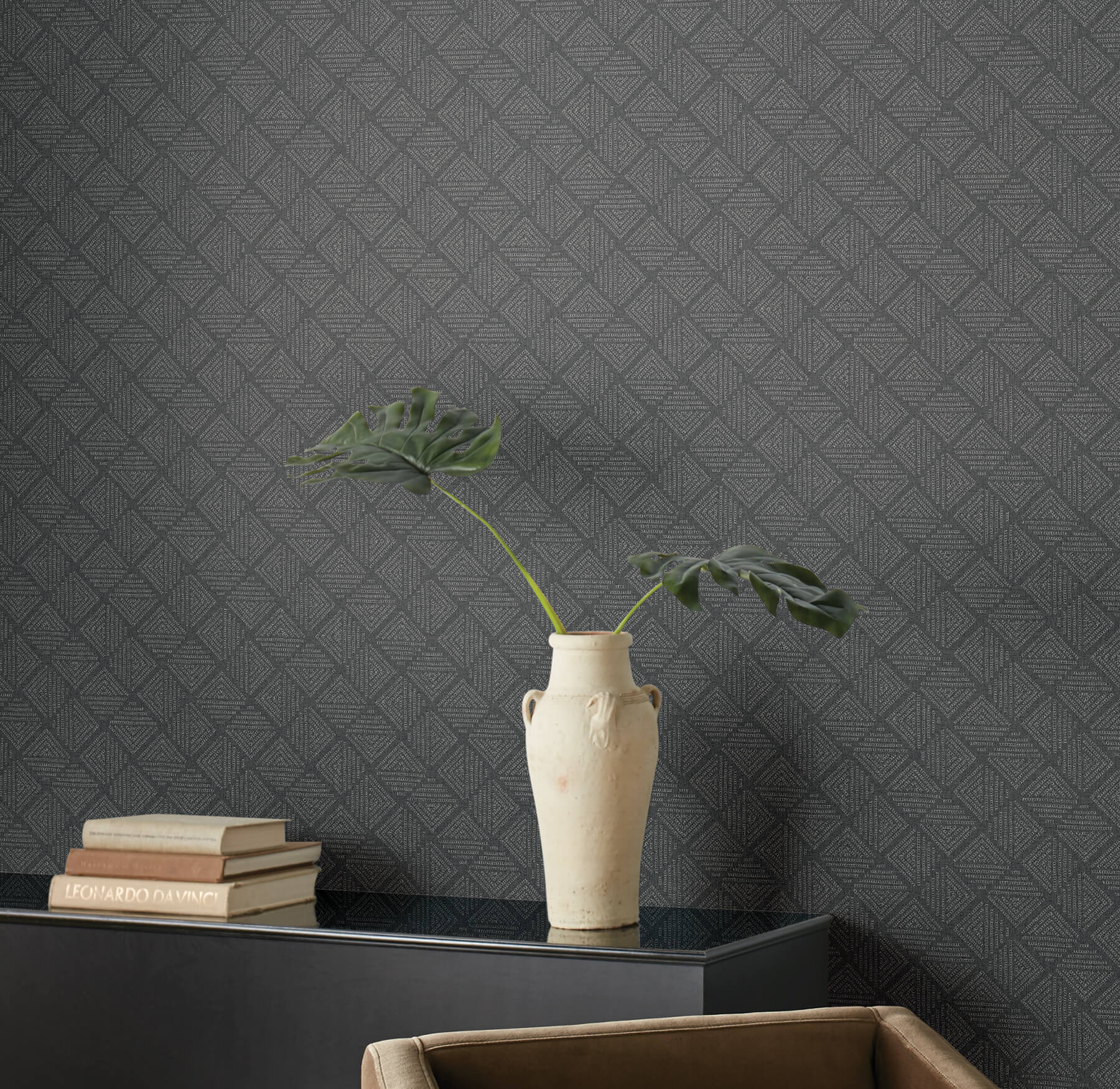 Intricate hand-embroidered diamonds create an organic, yet tailored, look. Seen here in rich charcoal and sterling. This Center Square Wallpaper measures approximately 54 inches wide by 90 feet long, measuring approximately 405 square feet per roll. Inspired by natural textures and architectural details, Magnolia’s collection is thoughtfully curated to tell the story of home with warmth, personality, and charm. Each piece is uniquely designed and crafted with care using high-quality, sustainable materials that are both durable and easy to clean. Find a style that speaks to you – and bring any wall in your space to life.