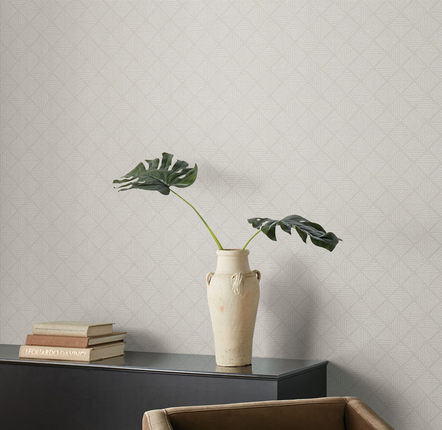 Intricate hand-embroidered diamonds create an organic, yet tailored, look. Seen here in light grey and white. This Center Square Wallpaper measures approximately 54 inches wide by 90 feet long, measuring approximately 405 square feet per roll. Inspired by natural textures and architectural details, Magnolia’s collection is thoughtfully curated to tell the story of home with warmth, personality, and charm. Each piece is uniquely designed and crafted with care using high-quality, sustainable materials that are both durable and easy to clean. Find a style that speaks to you – and bring any wall in your space to life.