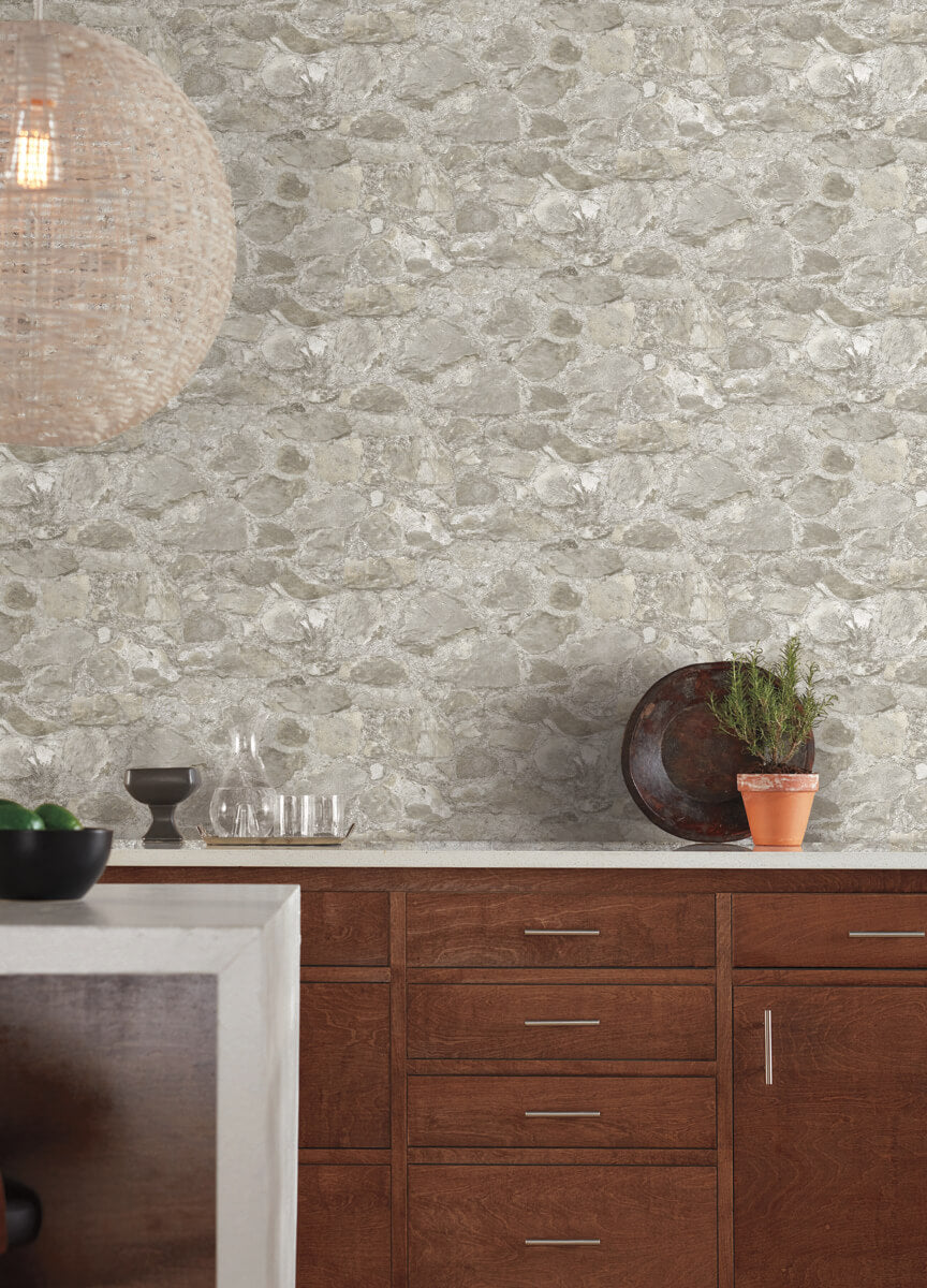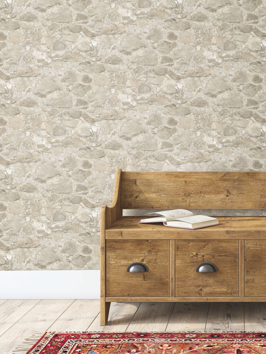 York Mediterranean Field Stone Wallpaper - Brown