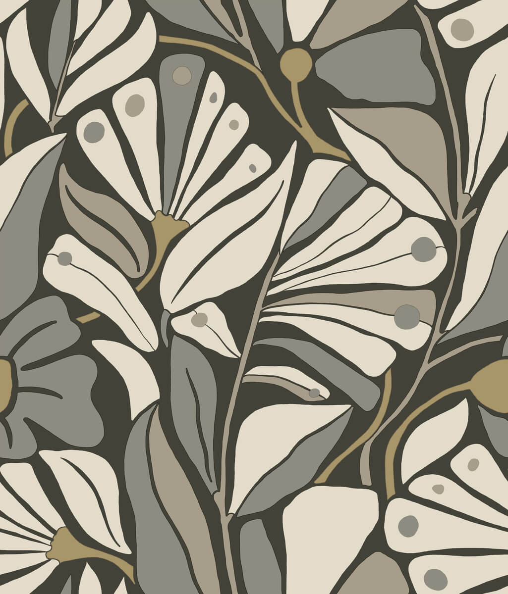 The epitome of bohemian elegance, Cabana Club's coastal fronds seem to drift in the breeze. Seen here in charcoal, grey, and cream with metallic accents. This Cabana Club Wallpaper measures approximately 20.5 inches wide by 33 feet long, measuring approximately 56.4 square feet per roll. California’s scenic vistas and luxurious, laid-back lifestyle inspires this sun-drenched collection of organic textures and breezy botanical designs.