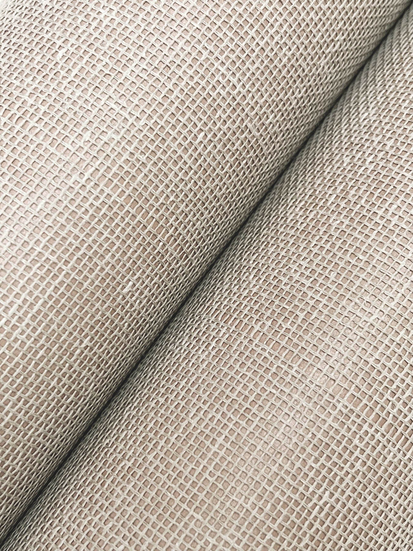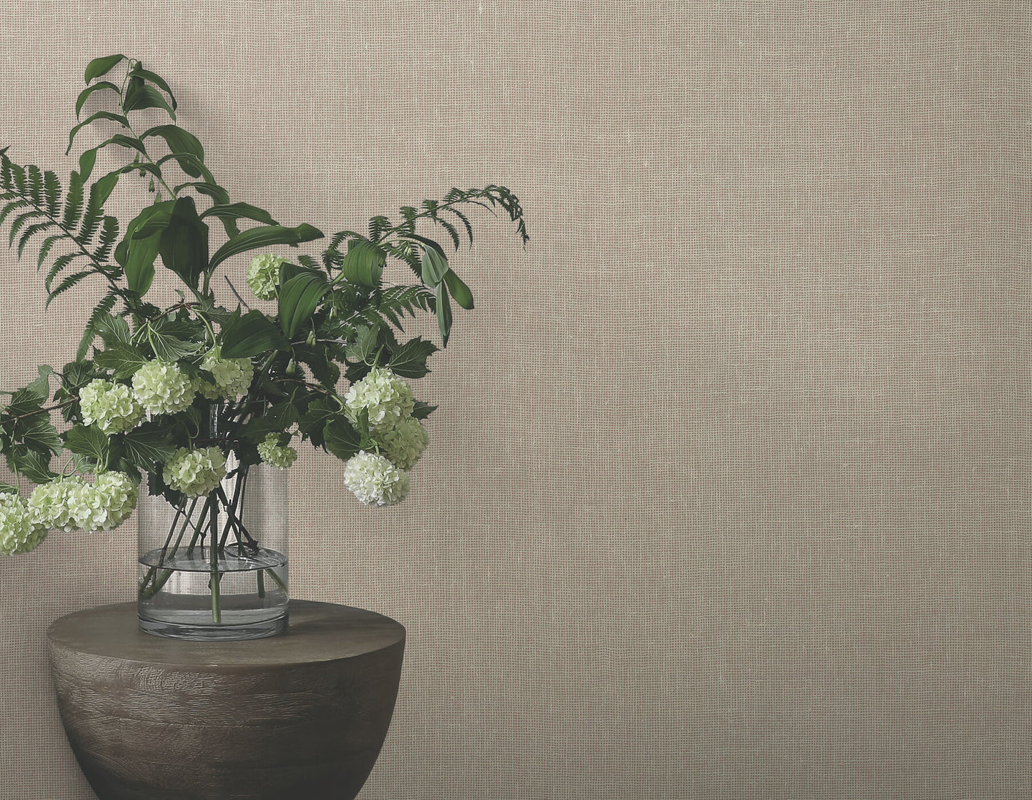 A diminutive grid of interwoven strands of linen adds softness and tactile depth to pattern Huri. Pictured here with pale grey strands against a brown ground. This Huri Wallpaper measures approximately 36 inches wide by 24 feet long, measuring approximately 72 square feet per roll. Traditional and timeless meets modern refinement, with artfully crafted designs redefined in striking color palettes.