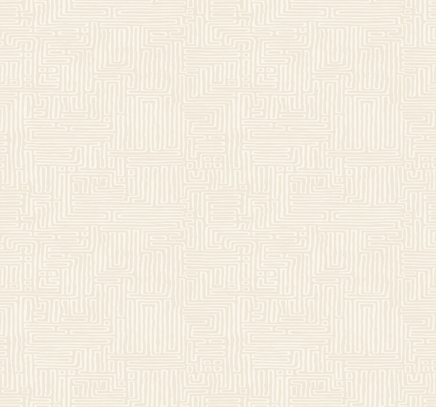 The continuous brushstrokes of pattern Passages form an elaborate, meandering maze. Seen here in pale beige and cream. This Passages Wallpaper measures approximately 27 inches wide by 27 feet long, measuring approximately 60.8 square feet per roll. Traditional and timeless meets modern refinement, with artfully crafted designs redefined in striking color palettes.