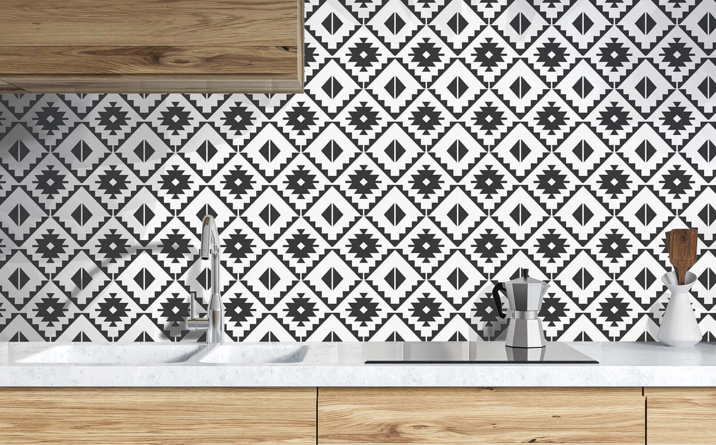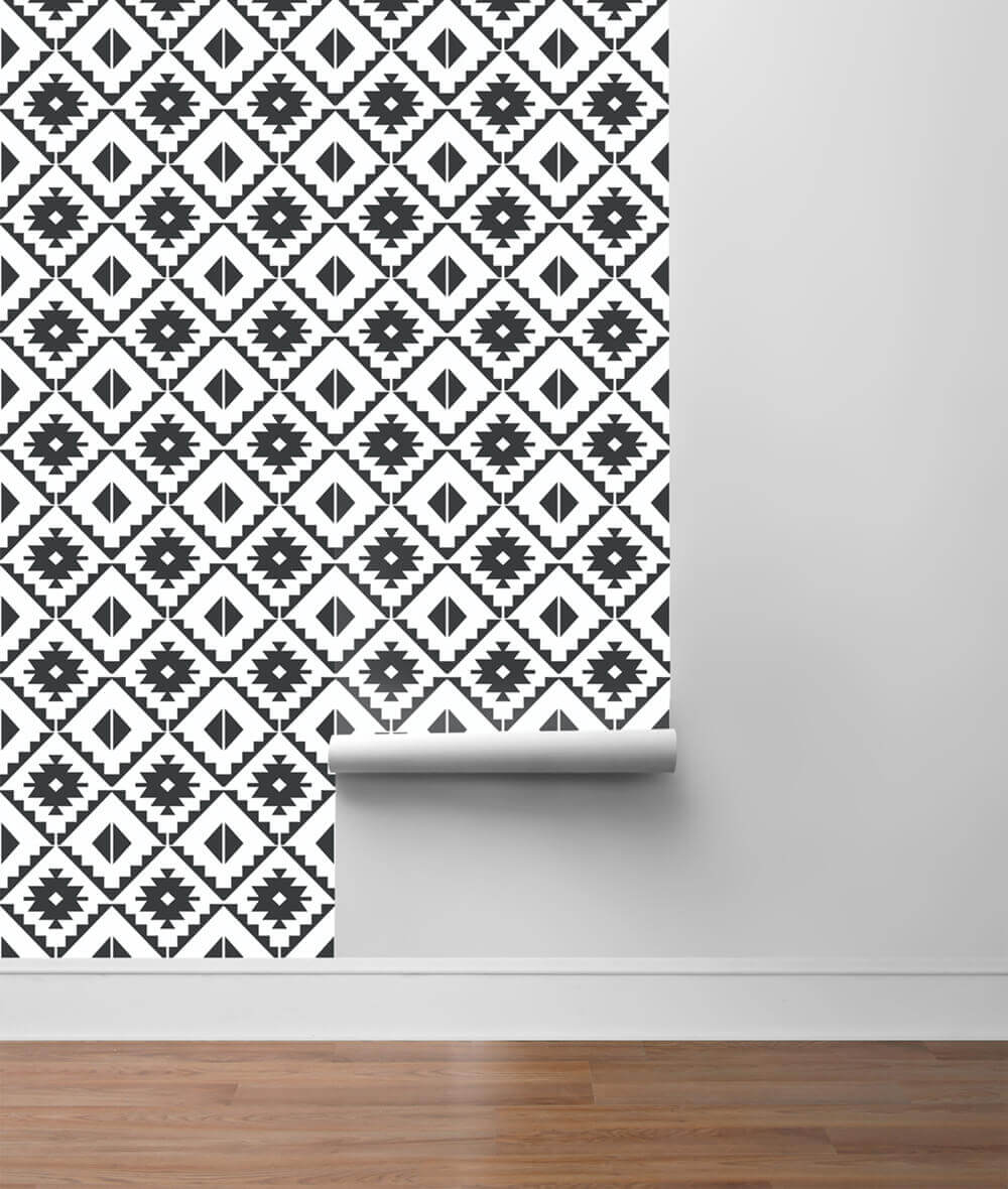 NextWall Southwest Tile Peel & Stick Wallpaper - Black & White