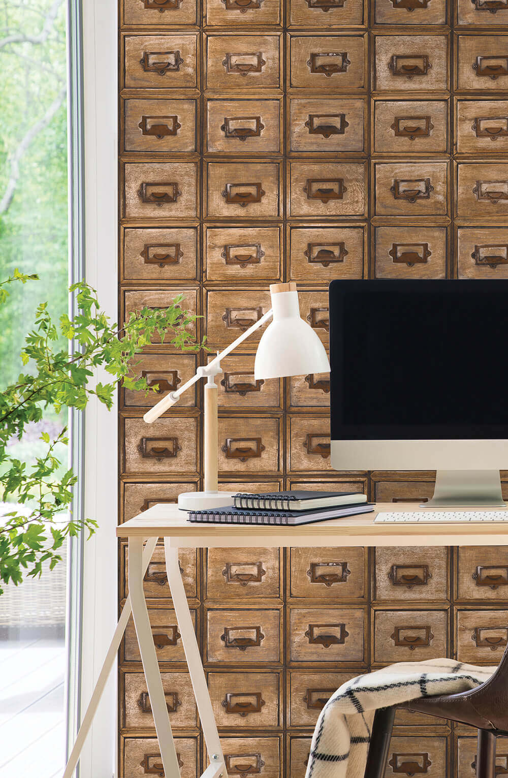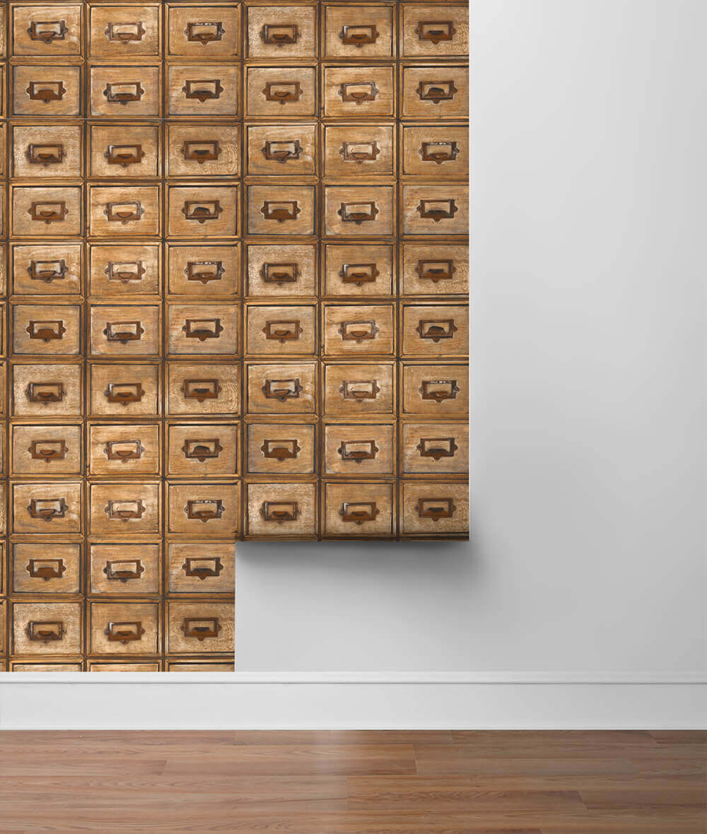 NextWall Library Card Catalog Peel & Stick Wallpaper - Brown