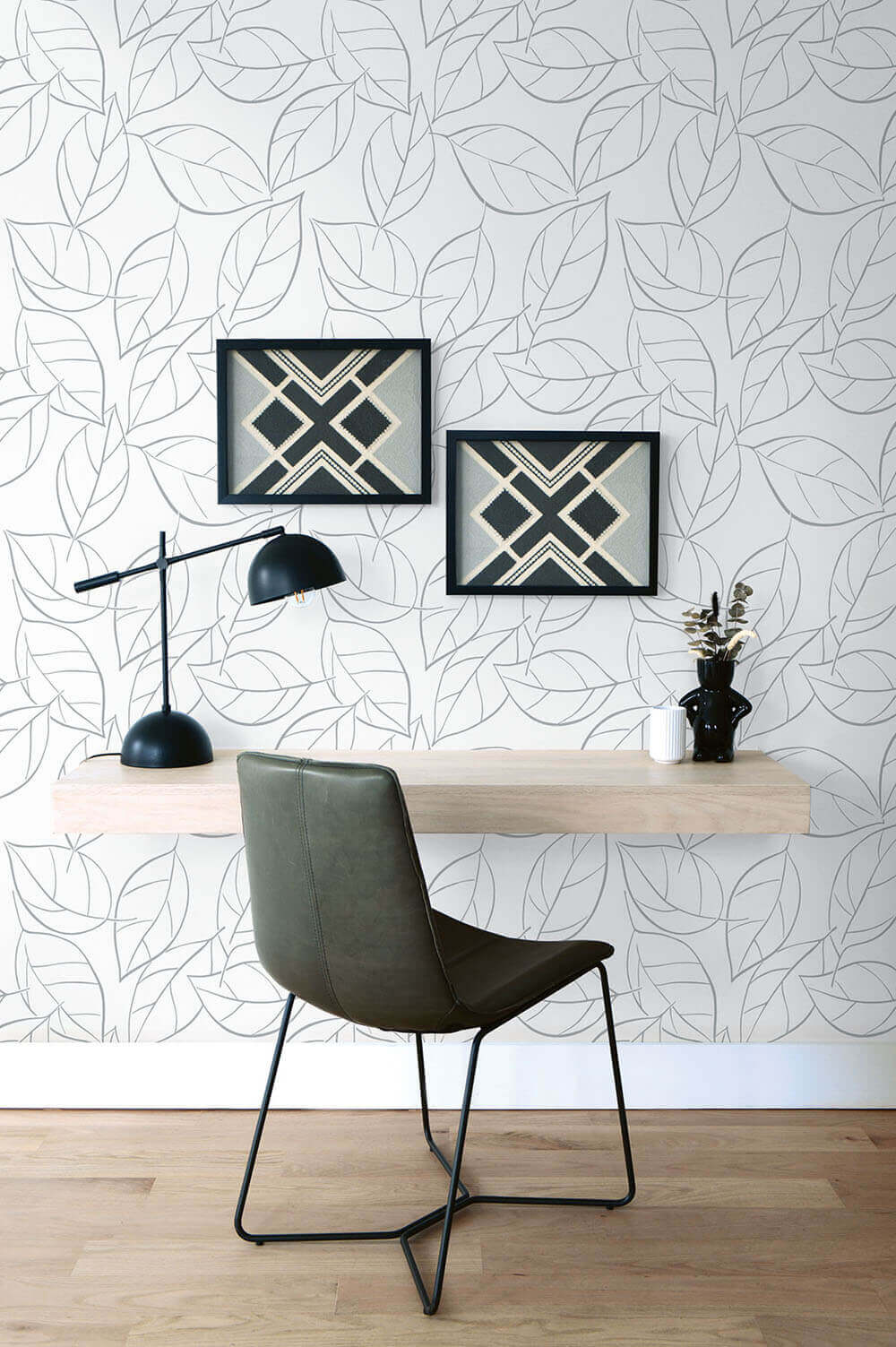 NextWall Tossed Leaves Peel & Stick Wallpaper - Gray