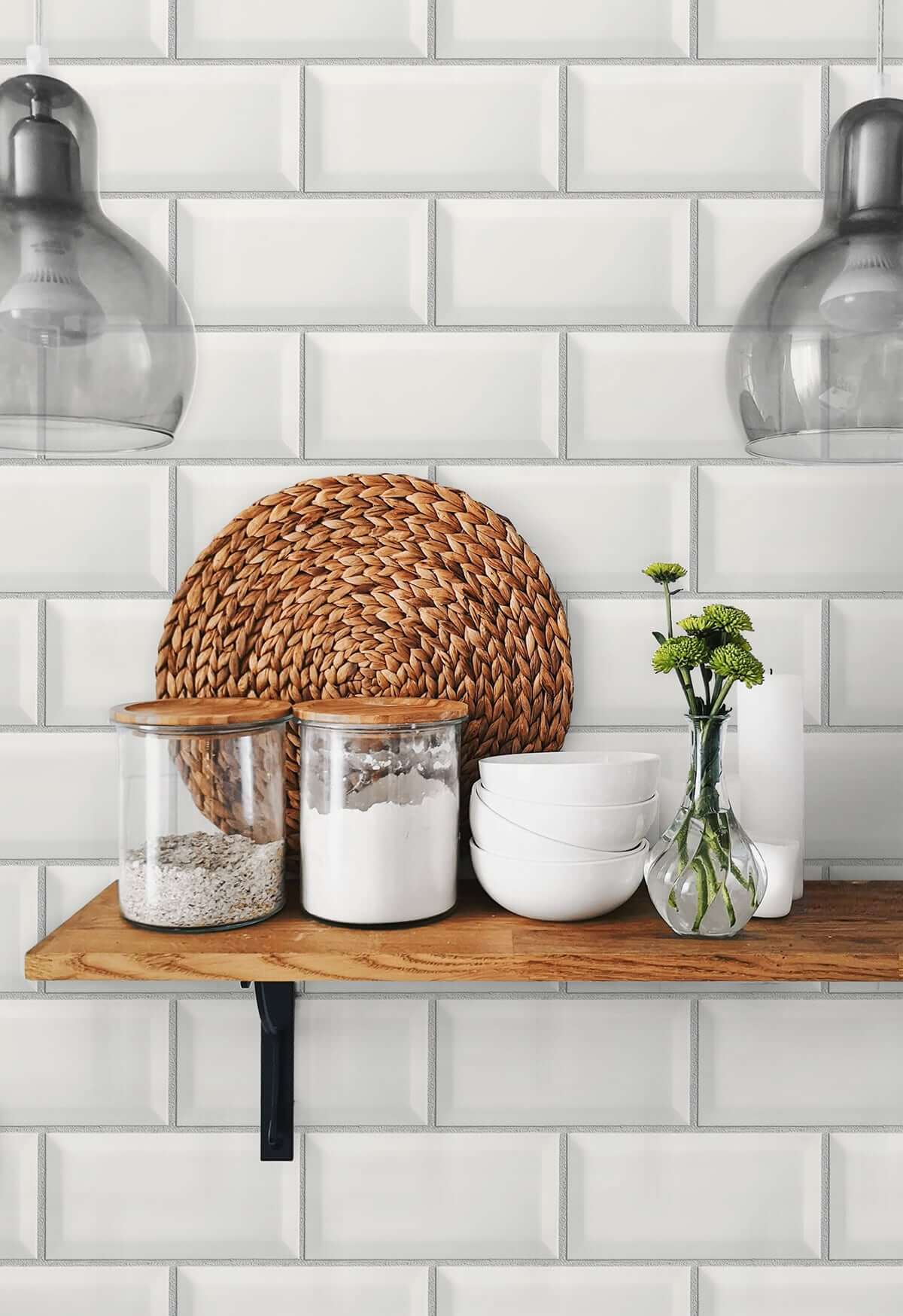 NextWall Large Subway Tile Peel & Stick Wallpaper - White