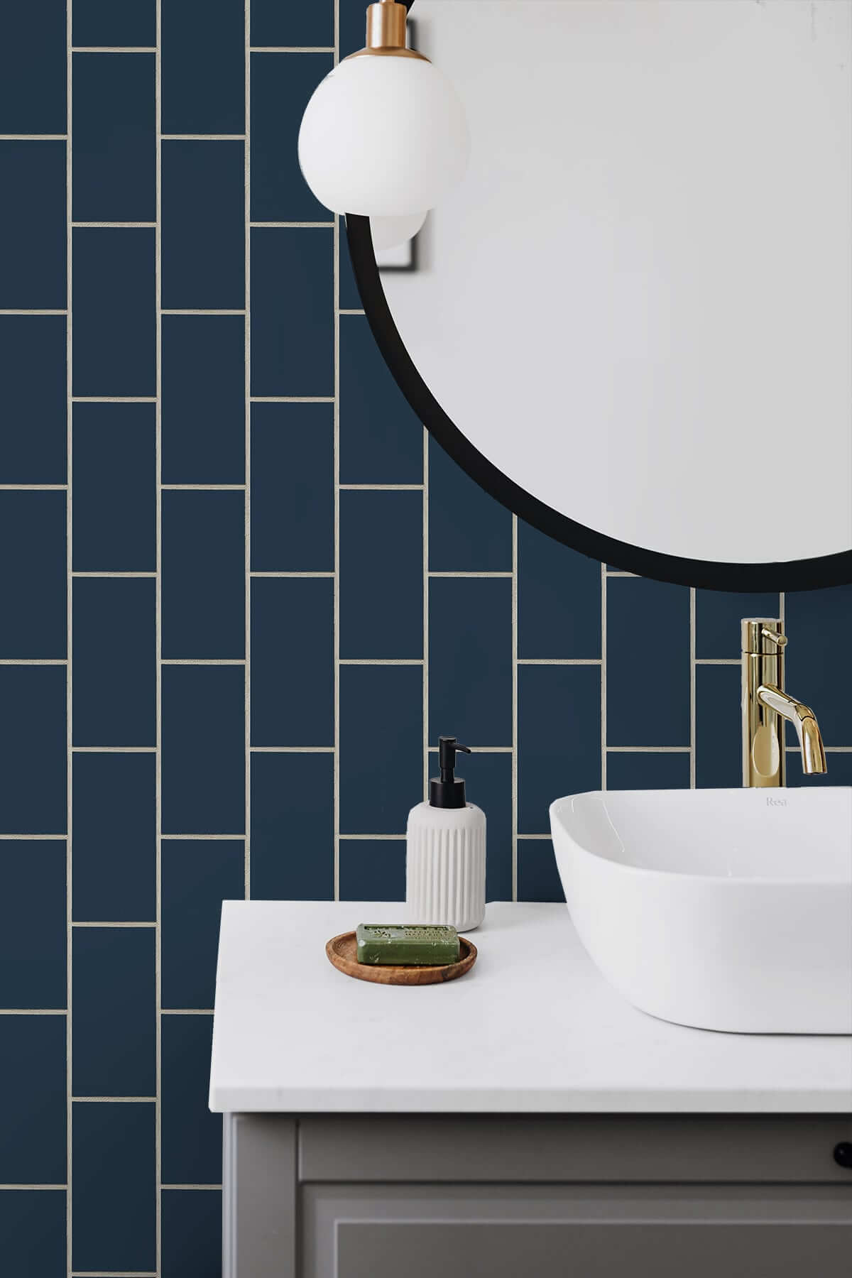 NextWall Retro Subway Tile Peel & Stick Wallpaper - Blue