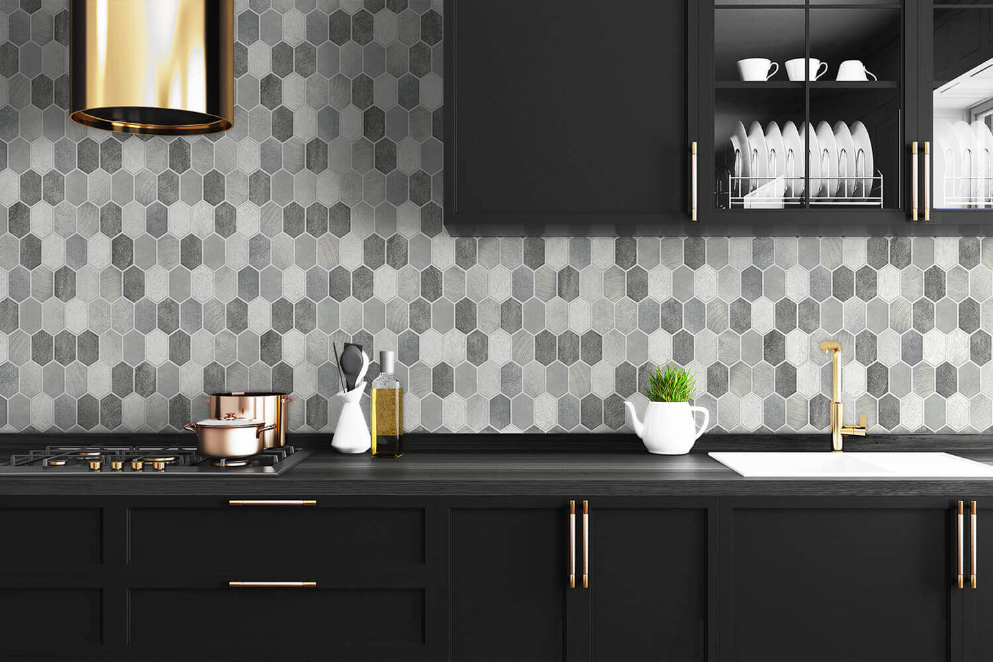 NextWall Brushed Hex Tile Peel & Stick Wallpaper - Dark Silver
