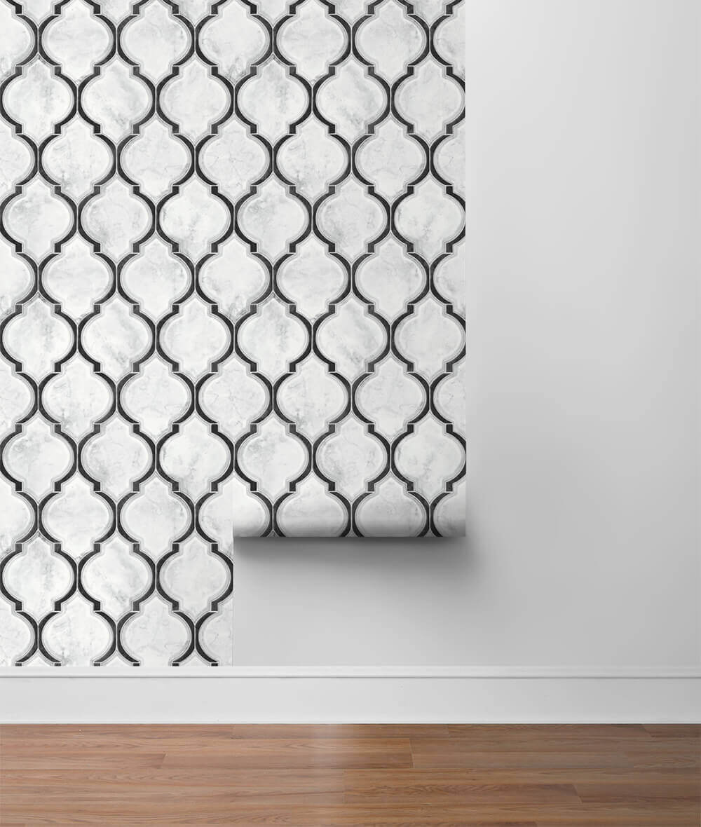 NextWall Marbled Ogee Peel & Stick Wallpaper - Black