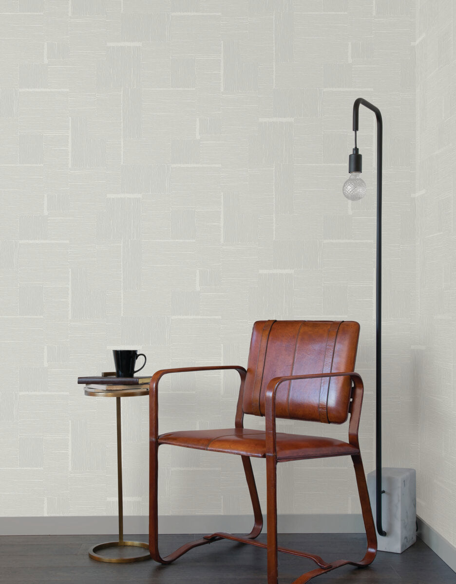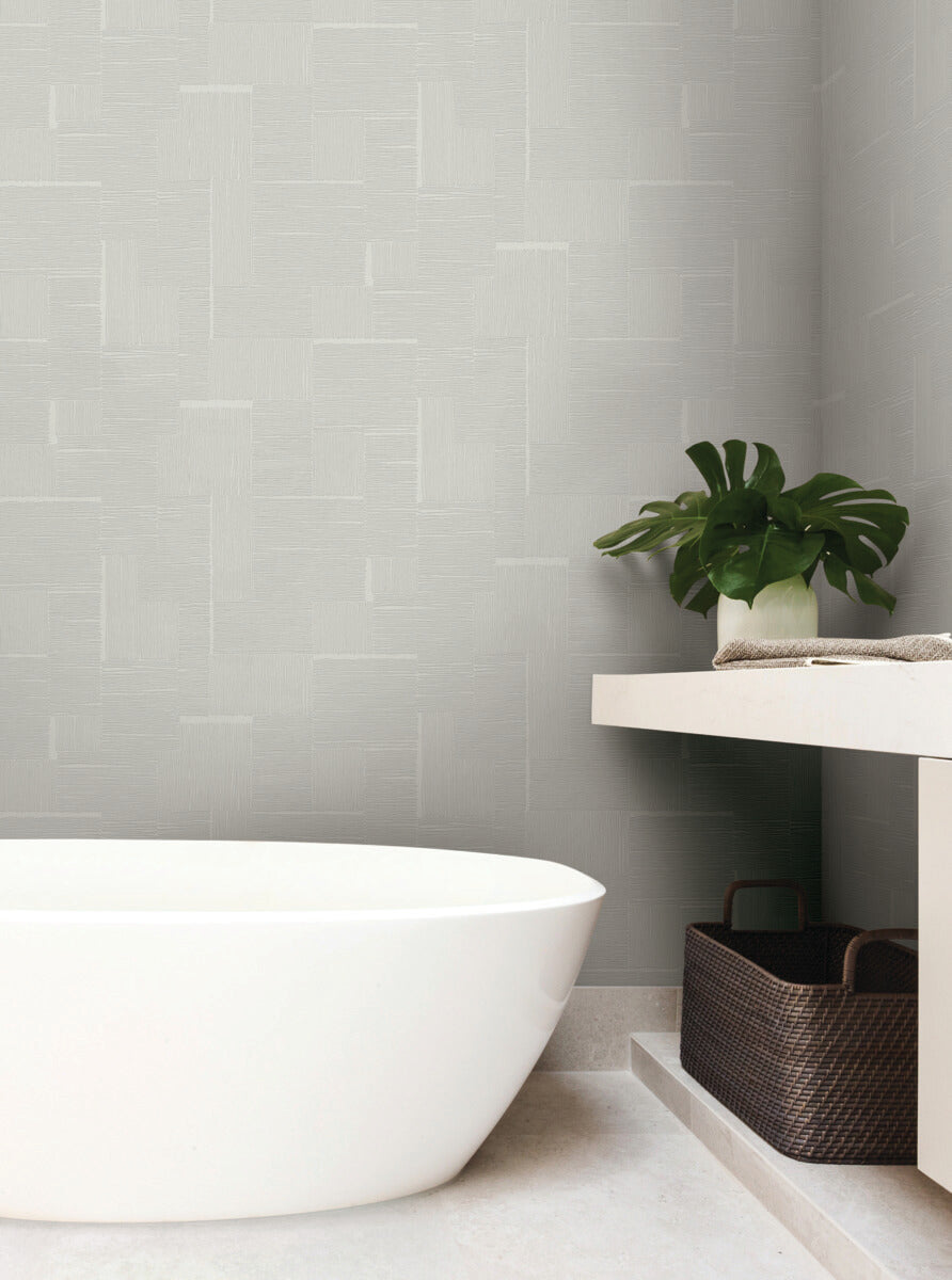 Furrows provide a fine line of deeply etched metallic geometric block to provide textural Contour with hints of glamour, shown in soft dove gray. This Contour Wallpaper measures approximately 20.8 inches wide by 32.8 feet long, measuring approximately 56.9 square feet per roll. The modern aesthetic of natural form.