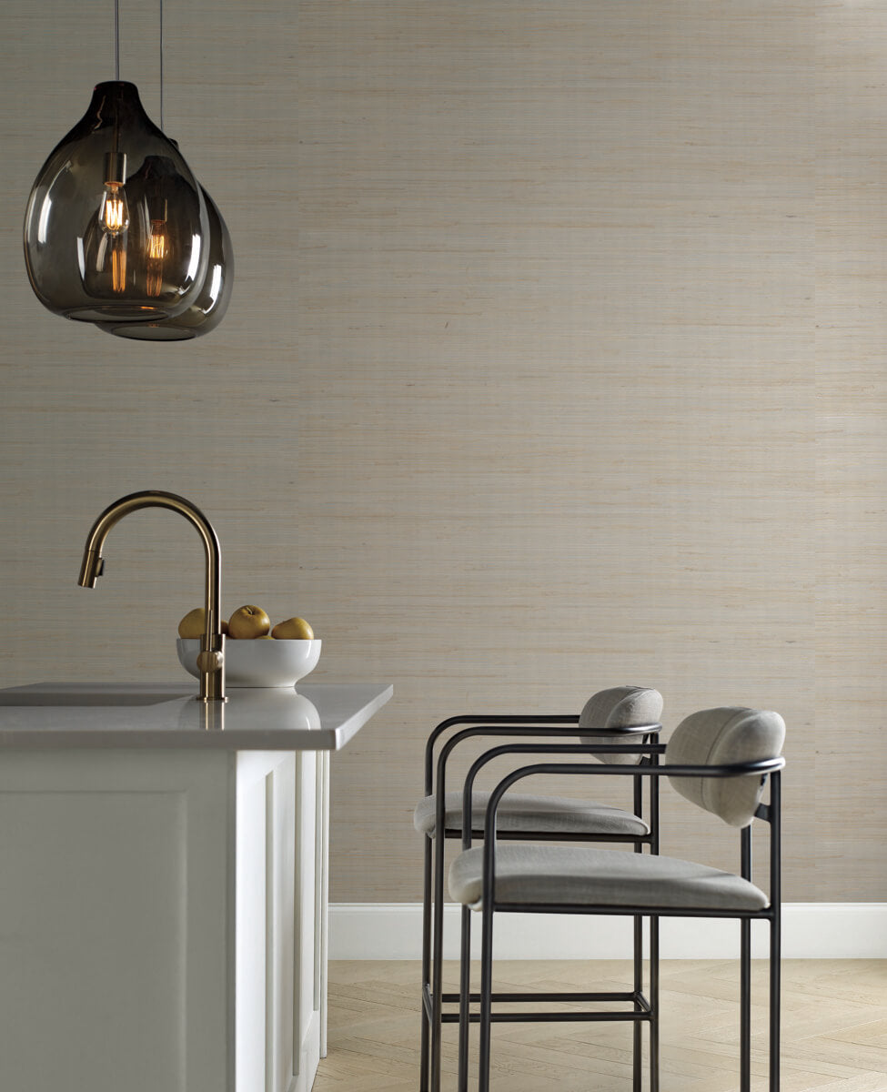 A luminous backing of metallic adds panache to the organic, knotted grasses of pattern Metallic Jute. Designer Candice Olson's exceptional design signature continues to reflect the breathtaking color, elegance and patterns of the natural world in this second edition of her best selling fine wallpaper collection Modern Nature.