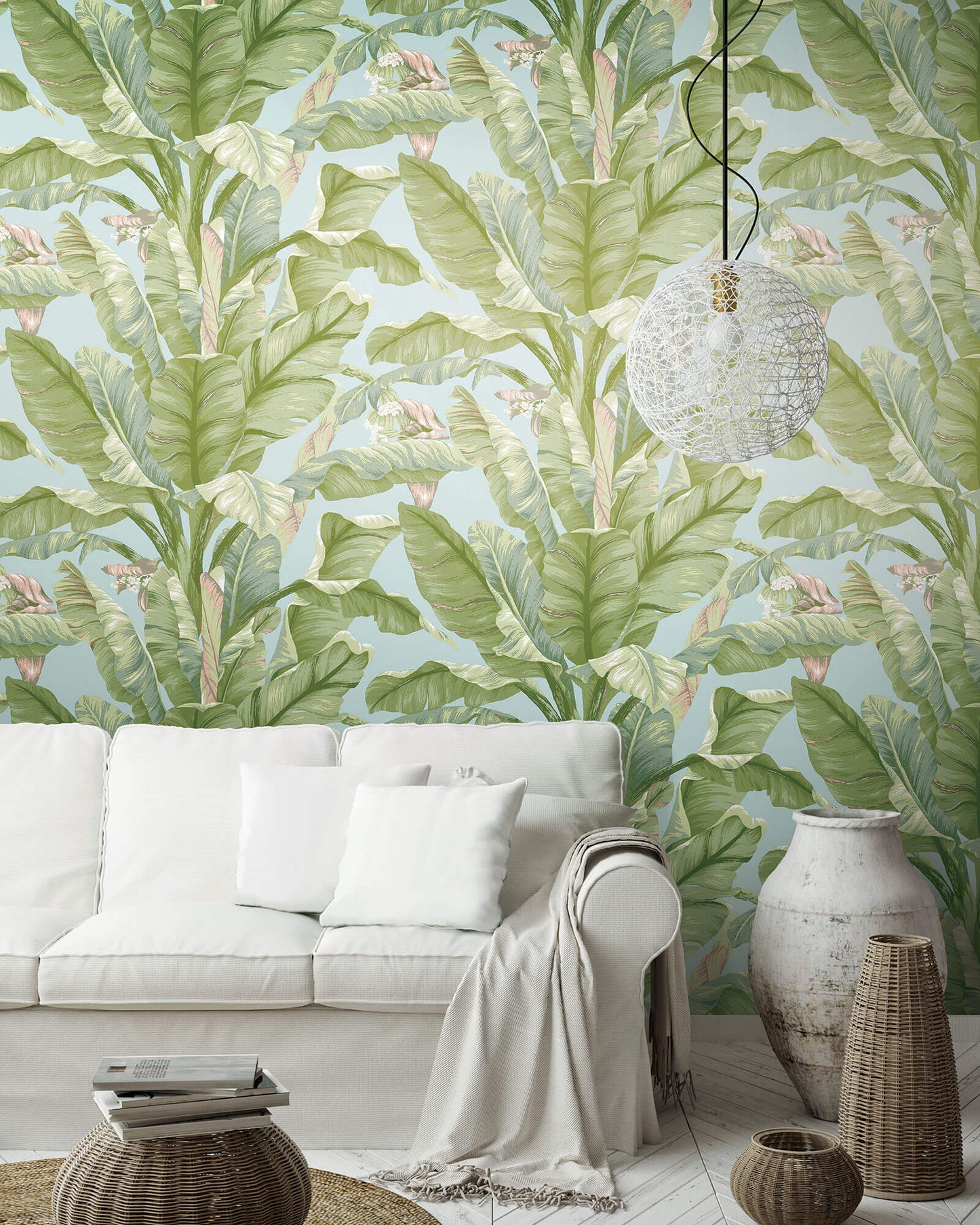Sizable leaves seem to sway in the trade winds revealing the flowers on this Banana Leaf wallpaper. The tall plant speaks of the tropics and of sun kissed days on the lanai. Peel & Stick Wallpaper is easy to apply and remove!