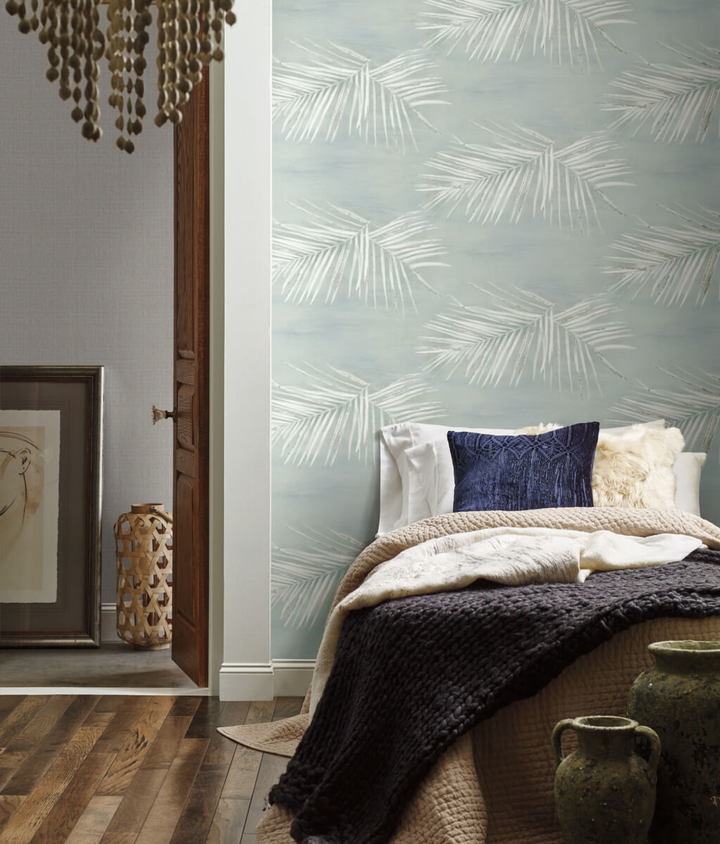 The artisanal rendering of crossed watercolor palm fronds and lazy mists of pattern Endless Summer summon dreams of a luxury lifestyle, shown in jade green with silver metallic. This Endless Summer Peel and Stick Wallpaper measures approximately 27 inches wide by 20 feet long, measuring approximately 45 square feet per roll. This curated collection of fine quality best sellers and bespoke exclusives creates a new offering with Aviva’s distinctive elegance of design, available for the first time on York’s Premium Peel + Stick. Alive with reverence for nature and global cultural influences, Aviva Stanoff artisanal aesthetic is the cornerstone of her celebrated signature style. This curated wallpaper collection showcases Aviva's distinctive elegance of design, combining best sellers and bespoke exclusives to create a new offering available for the first time on premium peel and stick.