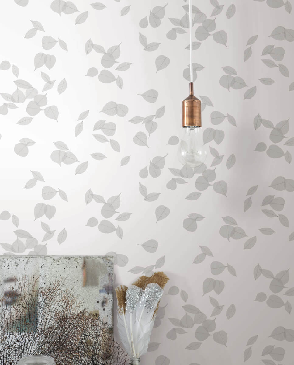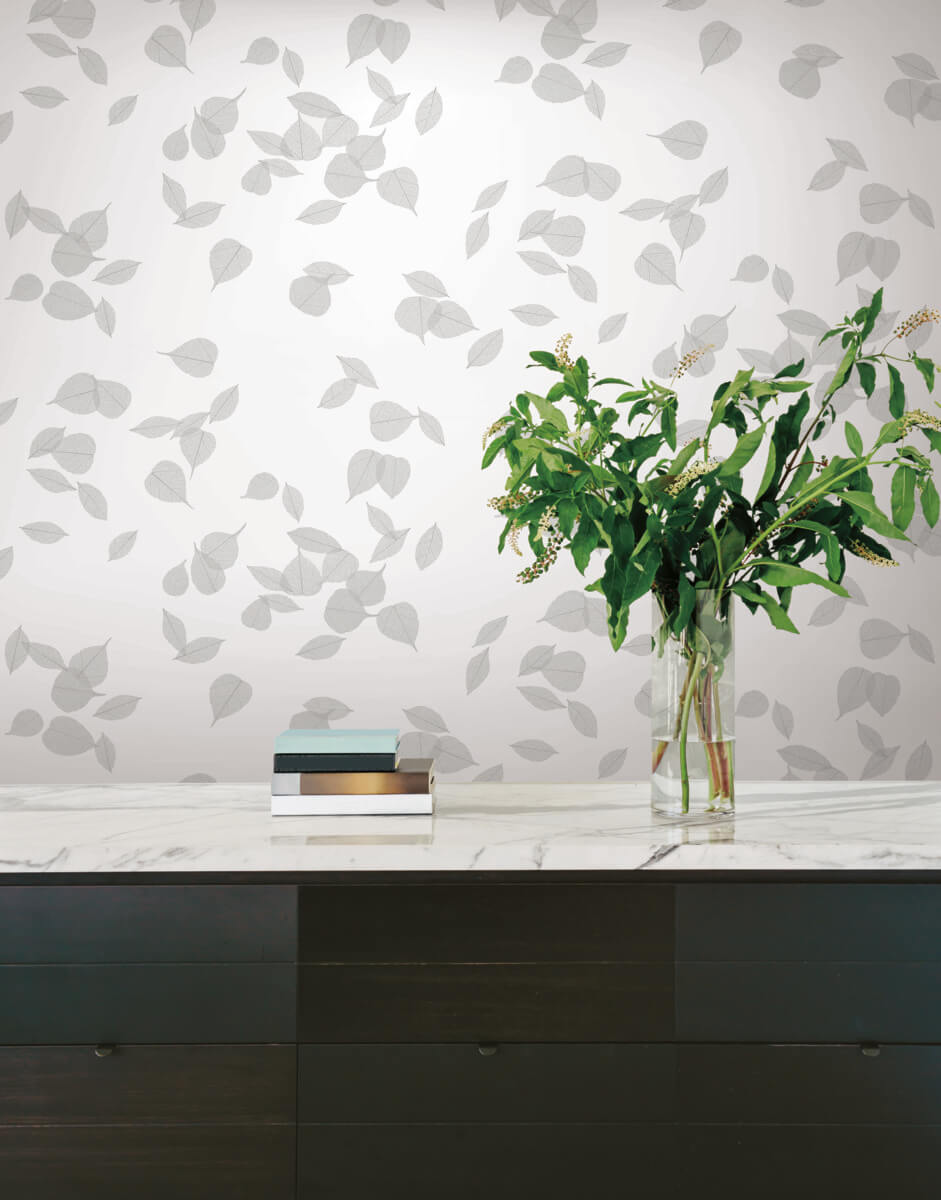 The floating toss of pattern Inner Peace is veined with hints of shimmering metallic or color to display the intricate veining of these lovely, mediative Ficus leaves, shown in salt grey with pewter metallic. This Inner Peace Peel and Stick Wallpaper measures approximately 27 inches wide by 20 feet long, measuring approximately 45 square feet per roll. The floating toss of pattern Inner Peace is veined with hints of shimmering metallic or color to display the intricate veining of these lovely, mediative Ficus leaves. Alive with reverence for nature and global cultural influences, Aviva Stanoff artisanal aesthetic is the cornerstone of her celebrated signature style. This curated wallpaper collection showcases Aviva's distinctive elegance of design, combining best sellers and bespoke exclusives to create a new offering available for the first time on premium peel and stick.