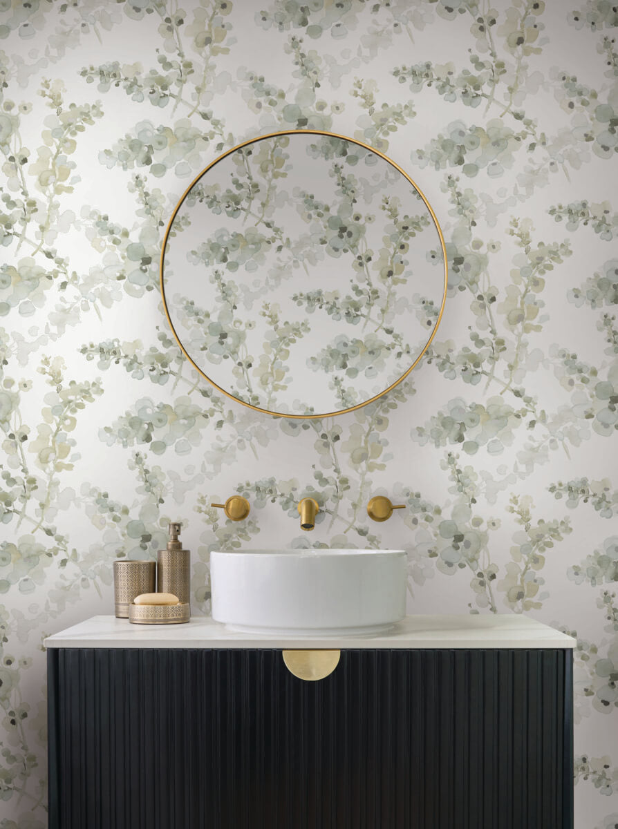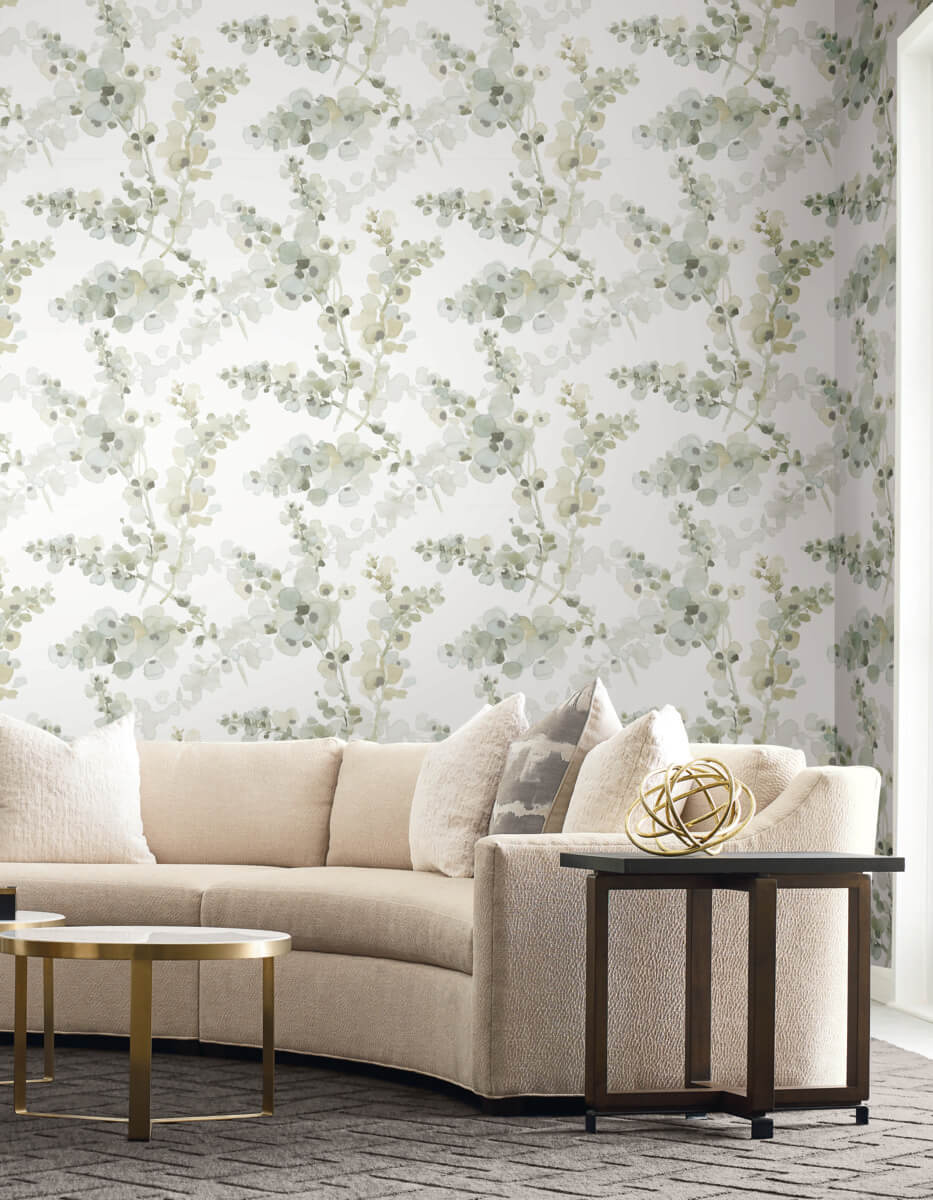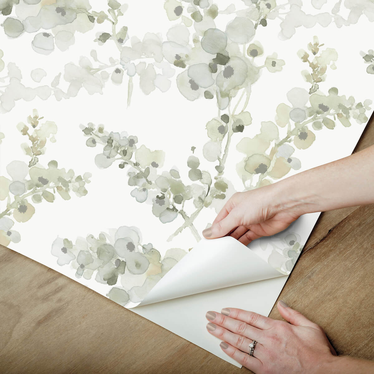 Stems of frothy petals from a watercolor garden portfolio make Blossom Fling a vivacious classic with fresh perspective. Seen here in a palette of green, pale teal, and delicate grey with metallic silver accents. This Blossom Fling Peel + Stick Wallpaper measures approximately 27 inches wide by 20 feet long, measuring approximately 45 square feet per roll. Candice Olson’s celebrated signature of current yet timeless design inspires these popular additions to her Premium Peel + Stick product offering. This is Simply Candice.