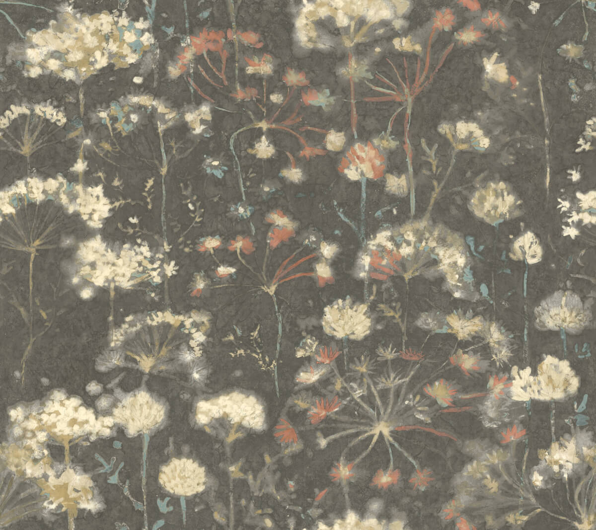 A soft dream of prairie flowers float on a colorful canvas of rendered blossoms and stems for pattern Botanical Fantasy’s theme of a wildflower meadow. Seen here in cream, red, and sky blue against rich charcoal. This Botanical Fantasy Peel + Stick Wallpaper measures approximately 27 inches wide by 20 feet long, measuring approximately 45 square feet per roll. Candice Olson’s celebrated signature of current yet timeless design inspires these popular additions to her Premium Peel + Stick product offering. This is Simply Candice.