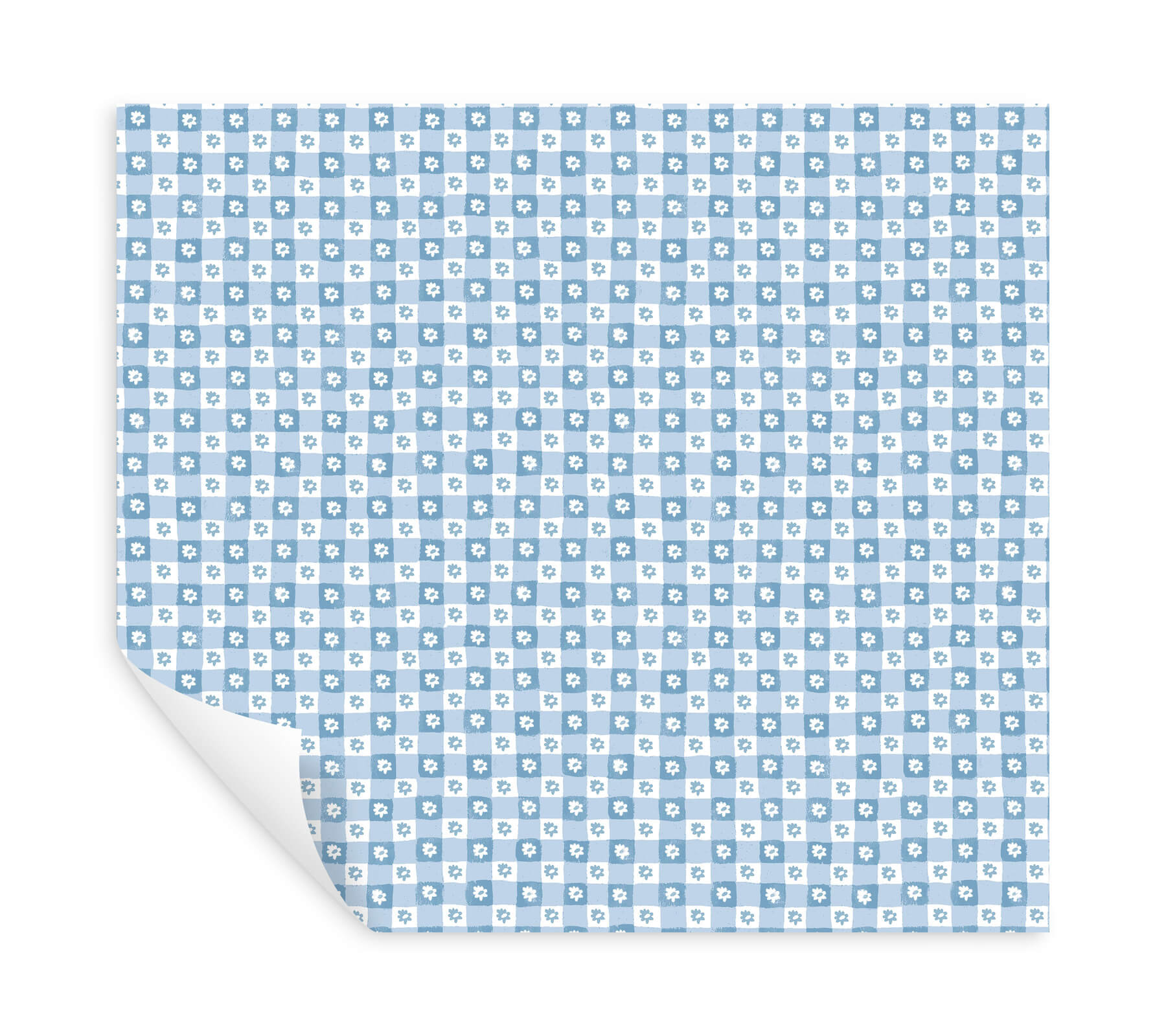 A checkerboard of illustrated daisies adorns this classic gingham pattern, reminiscent of spring picnics and warm weather nostalgia. Featured here in shades of blue and white. Daisy Gingham is a peel and stick, non woven wallpaper measuring 27 inches wide by 20 feet long, covering approximately 45 square feet per roll. Bring signature Rifle Paper Co. style to your walls with the Premium Peel and Stick Wallpaper Collection 5 where art and design meet everyday living. These removable wallpapers feature the brand's iconic floral patterns, elegant line work, and whimsical illustrations, creating a bright and beautiful way to refresh any space.