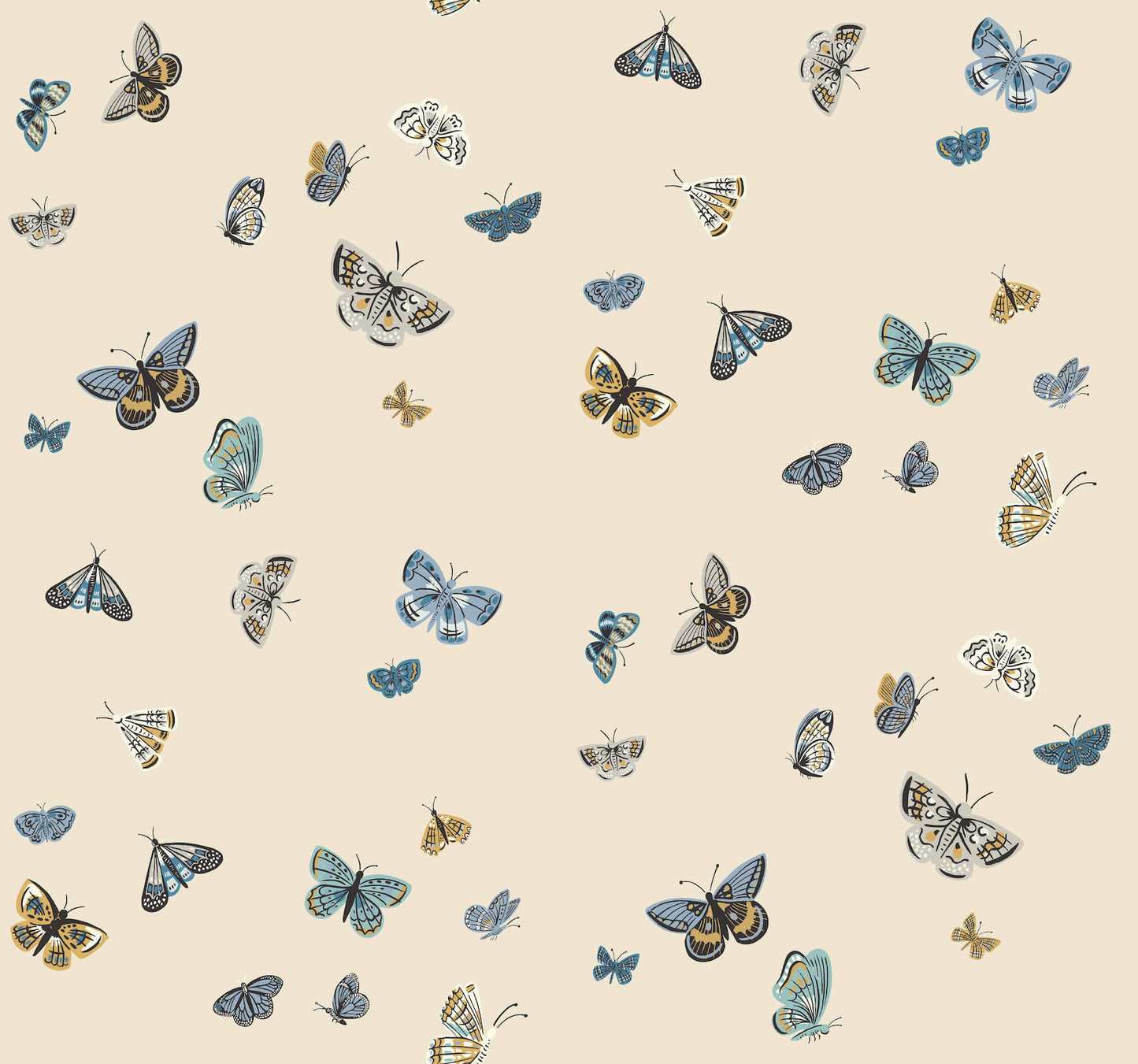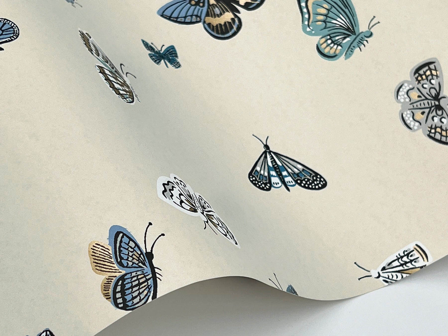 Rifle Paper Co. Butterfly House wallpaper is a charming array of fluttering butterflies, with detailed wings and playful colors, including blues, yellows, white, cream and grey. This Butterfly House Wallpaper measures approximately 27 inches wide by 27 feet long, measuring approximately 60.8 square feet per roll. The world of Rifle Paper Co. is in full bloom with their third wallpaper collection. With statement floral prints, detailed illustrated designs, and metallic accents, this collection is designed to bring beauty to every room.