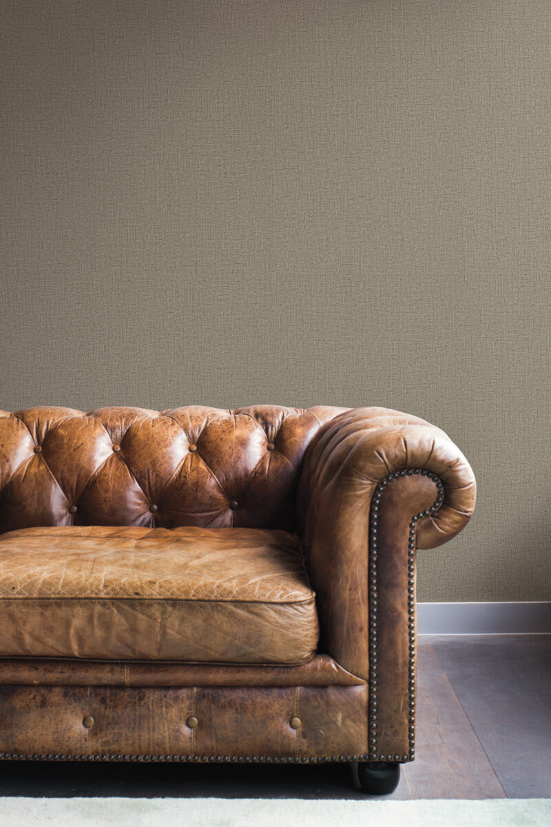 The rustic threads of pattern Rugged Linen highlight the textural slubs and irregularities inherent in hand-loomed cloth in this iconic classic weave, shown in brwn and kaki. This Rugged Linen Wallpaper measures approximately 27 inches wide by 27 feet long, measuring approximately 60.8 square feet per roll. Designed for function, industrial manufacturing’s unmistakable elements evolve to become the distinctive characteristics of a new philosophy of informal, modern sophistication of style.