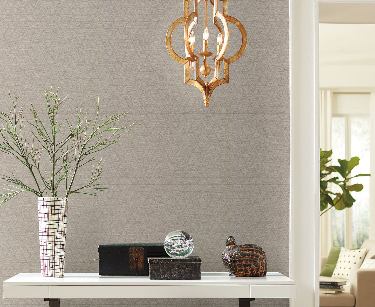 Forming a mesmerizing pattern of hexagons, Amulet pairs small embossed triangles with a textured linework. An urbane artistic portfolio of polished elegance and contemporary verve designed with the signature stylings of Stacy Garcia for York Wallcoverings.