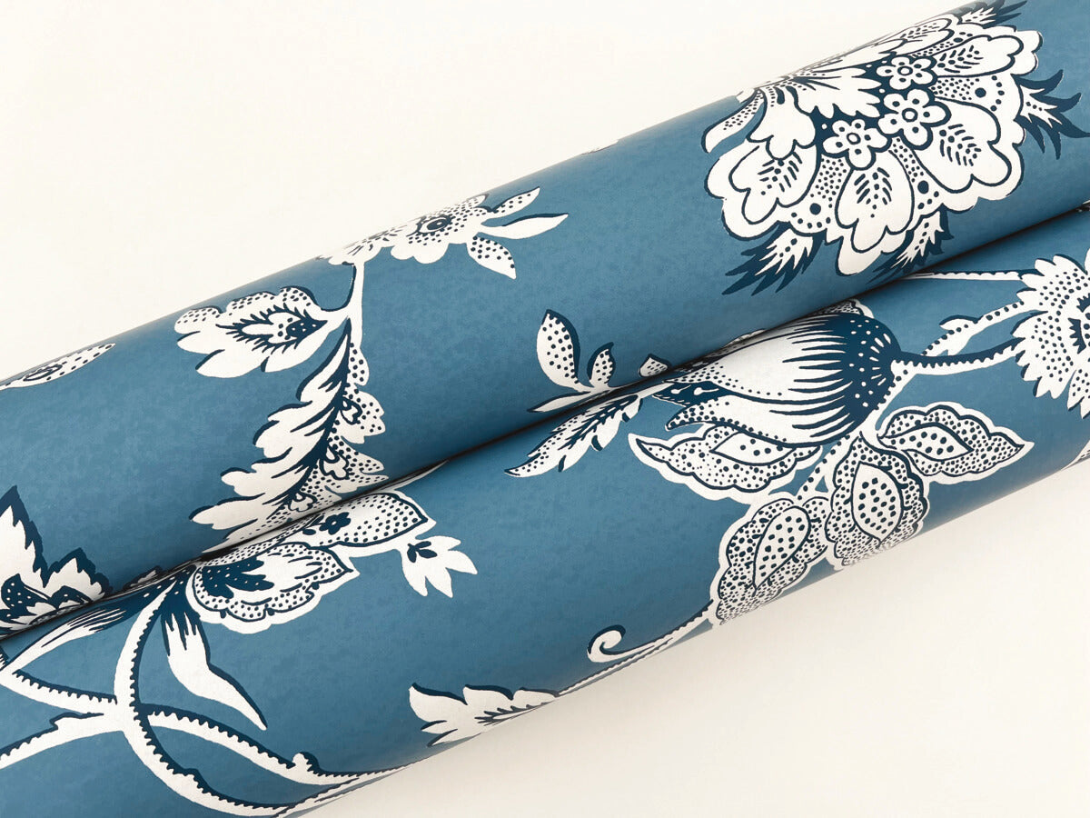The refined Jacobean block print of pattern Sutton is detailed in white and dark blue along a steel blue background. This Sutton Wallpaper measures approximately 27 inches wide by 27 feet long, measuring approximately 60.8 square feet per roll. The quintessential design for timeless romance, toile (pronounced ‘twall’) traces its origins to 18th century fabrics. This celebrated motif is explored with a range of classical reproductions and modern reimaginings.