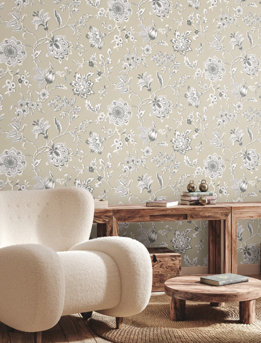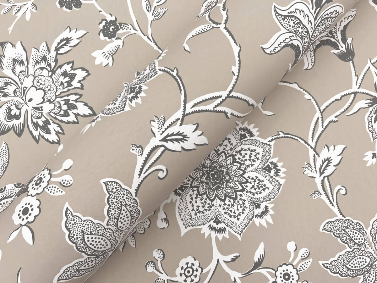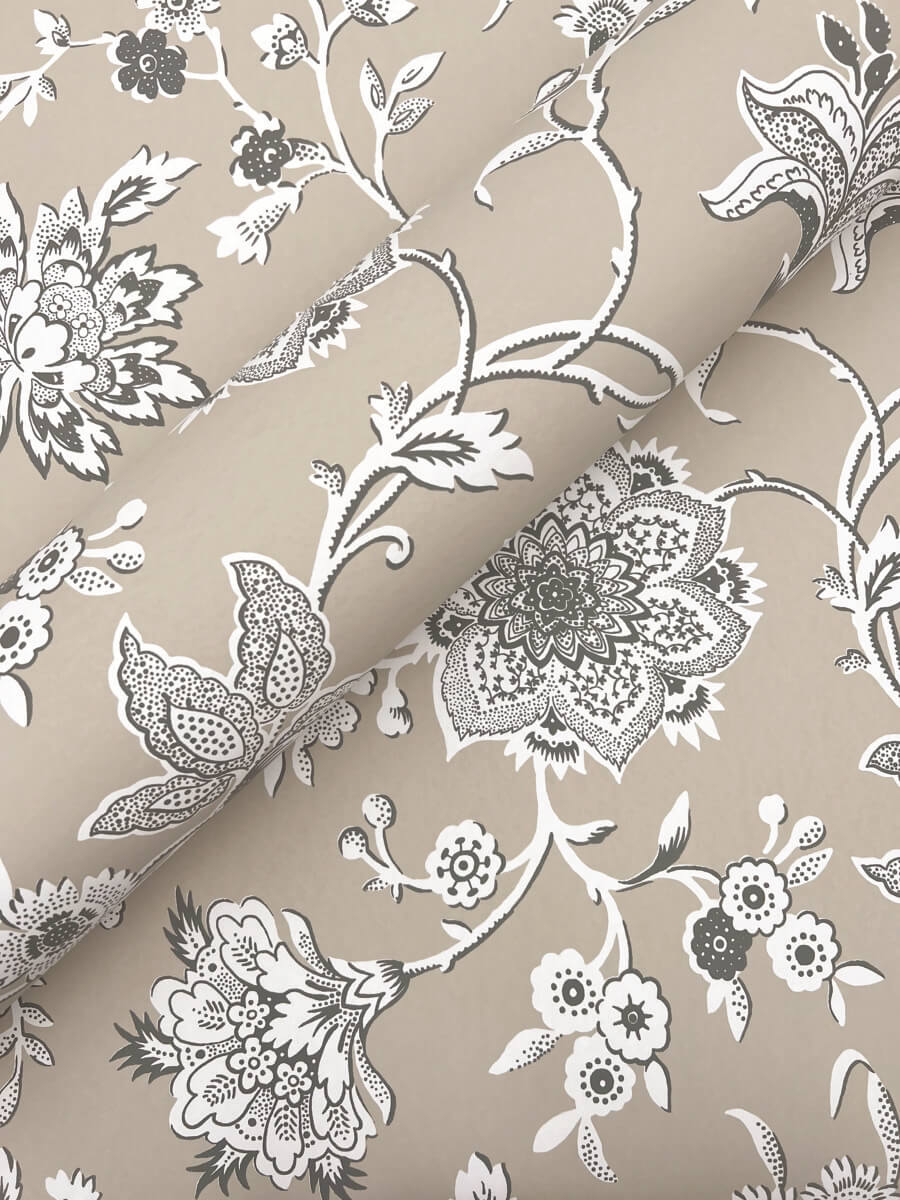 The refined Jacobean block print of pattern Sutton is detailed in white and dark grey along a warm taupe background. This Sutton Wallpaper measures approximately 27 inches wide by 27 feet long, measuring approximately 60.8 square feet per roll. The quintessential design for timeless romance, toile (pronounced ‘twall’) traces its origins to 18th century fabrics. This celebrated motif is explored with a range of classical reproductions and modern reimaginings.