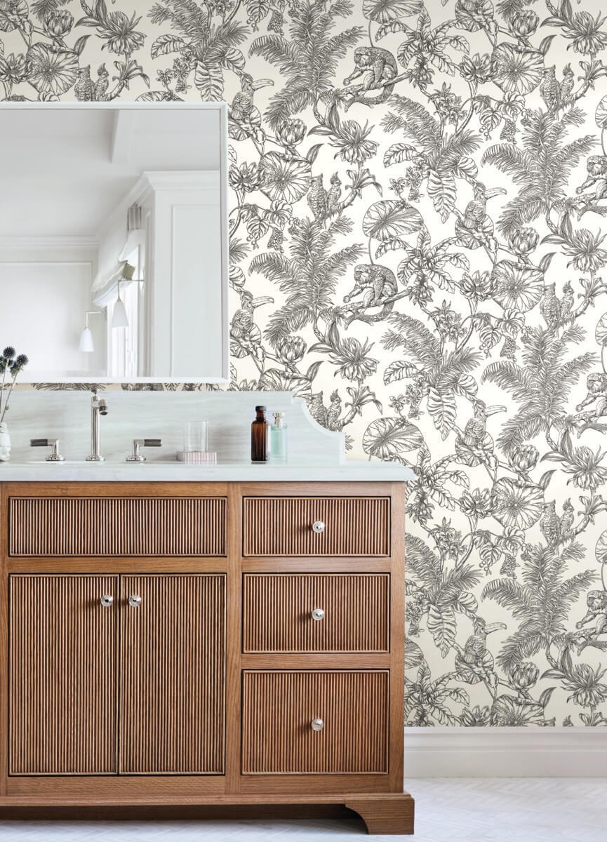 York Toile Tropical Sketch Toile Wallpaper - Black & White