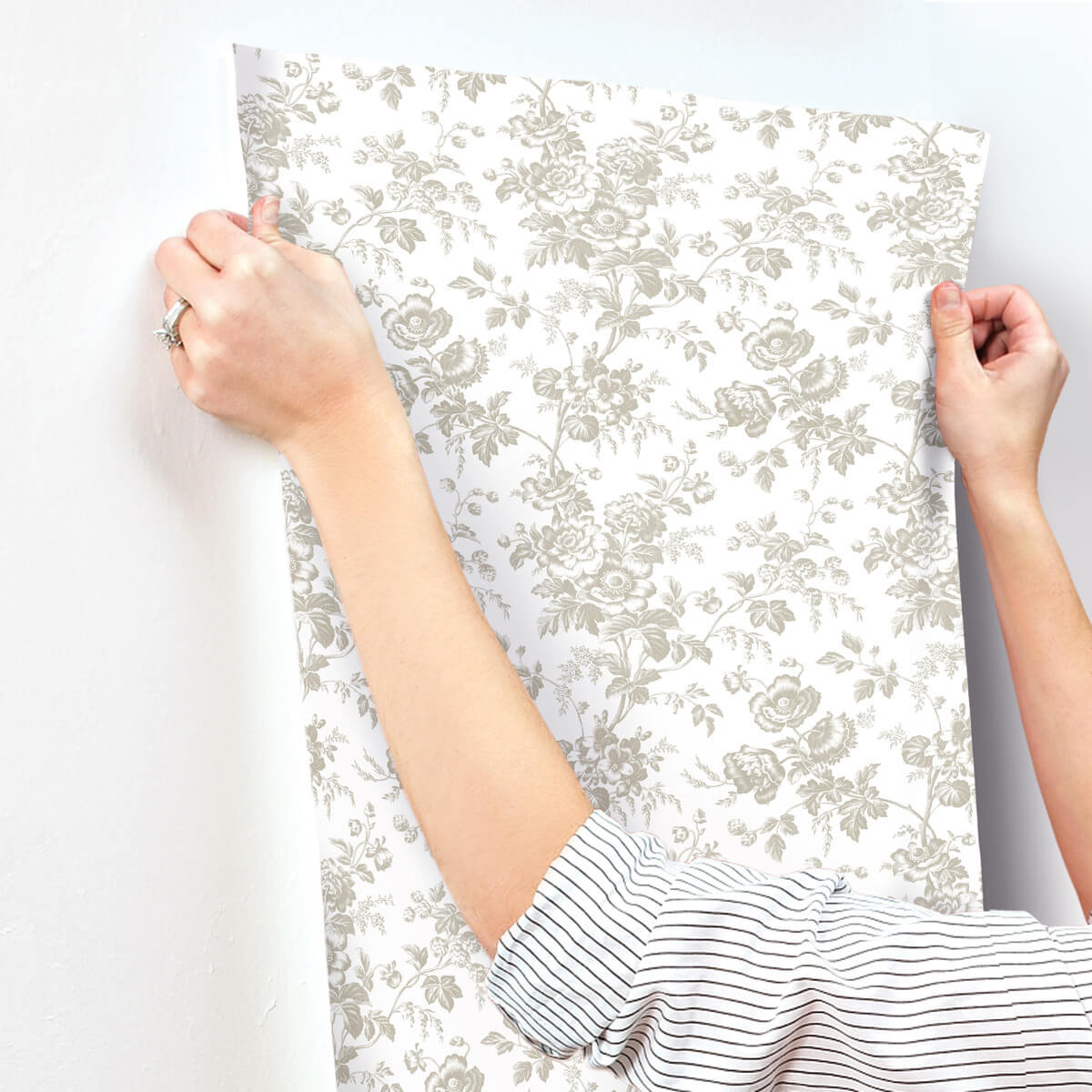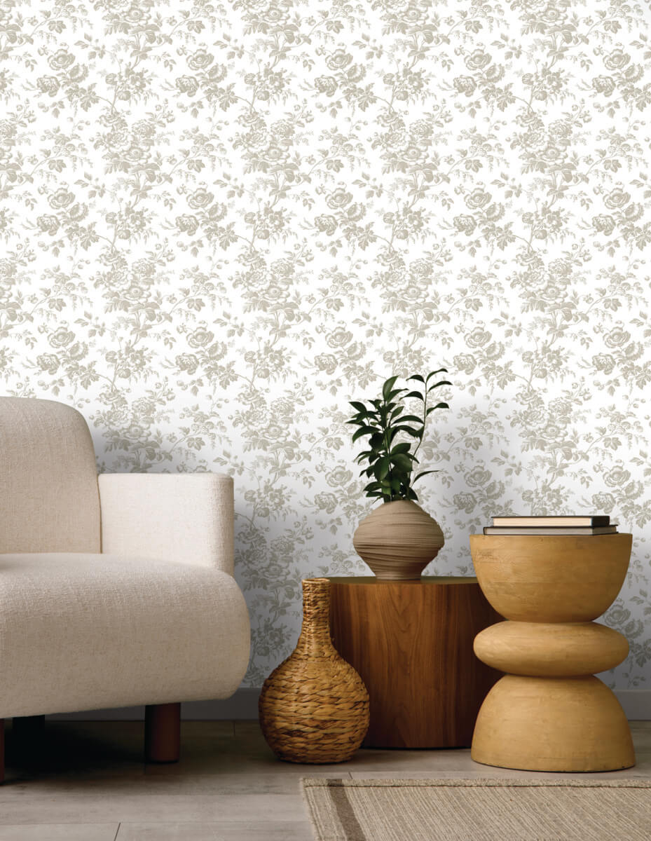 York Toile Anemone Toile Wallpaper - Warm Gray