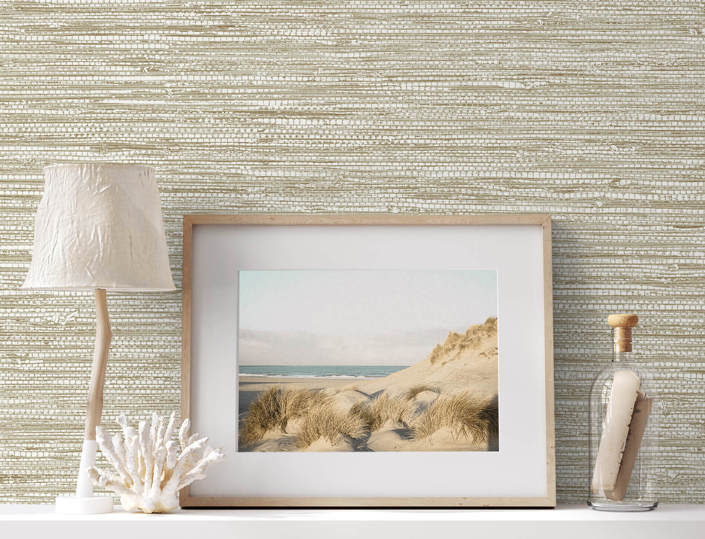 Seabrook Summer House Isla Faux Jute Wallpaper - Balanced Beige