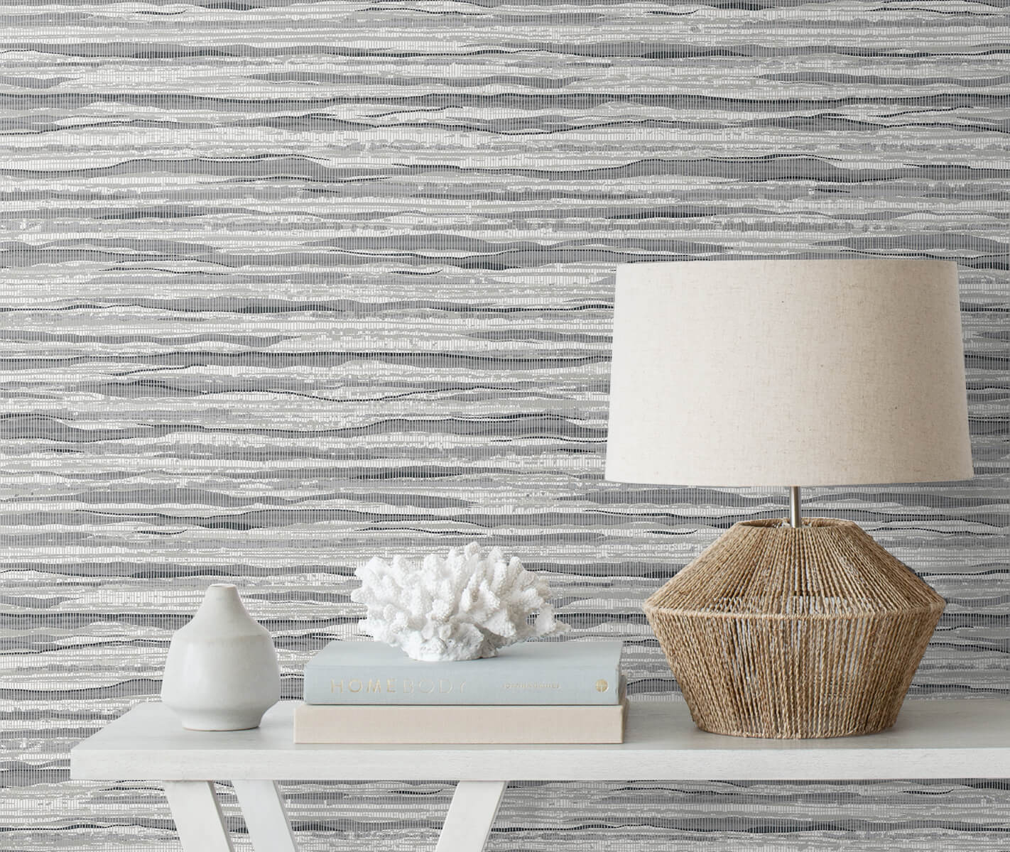 Seabrook Summer House Faux Stringcloth Wallpaper - Rainy day Surf