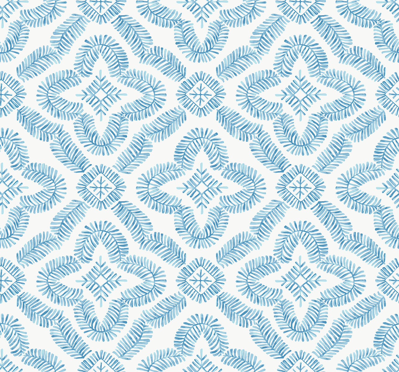 Seabrook Summer House Talia Botanical Medallion Wallpaper - Breezy Blue