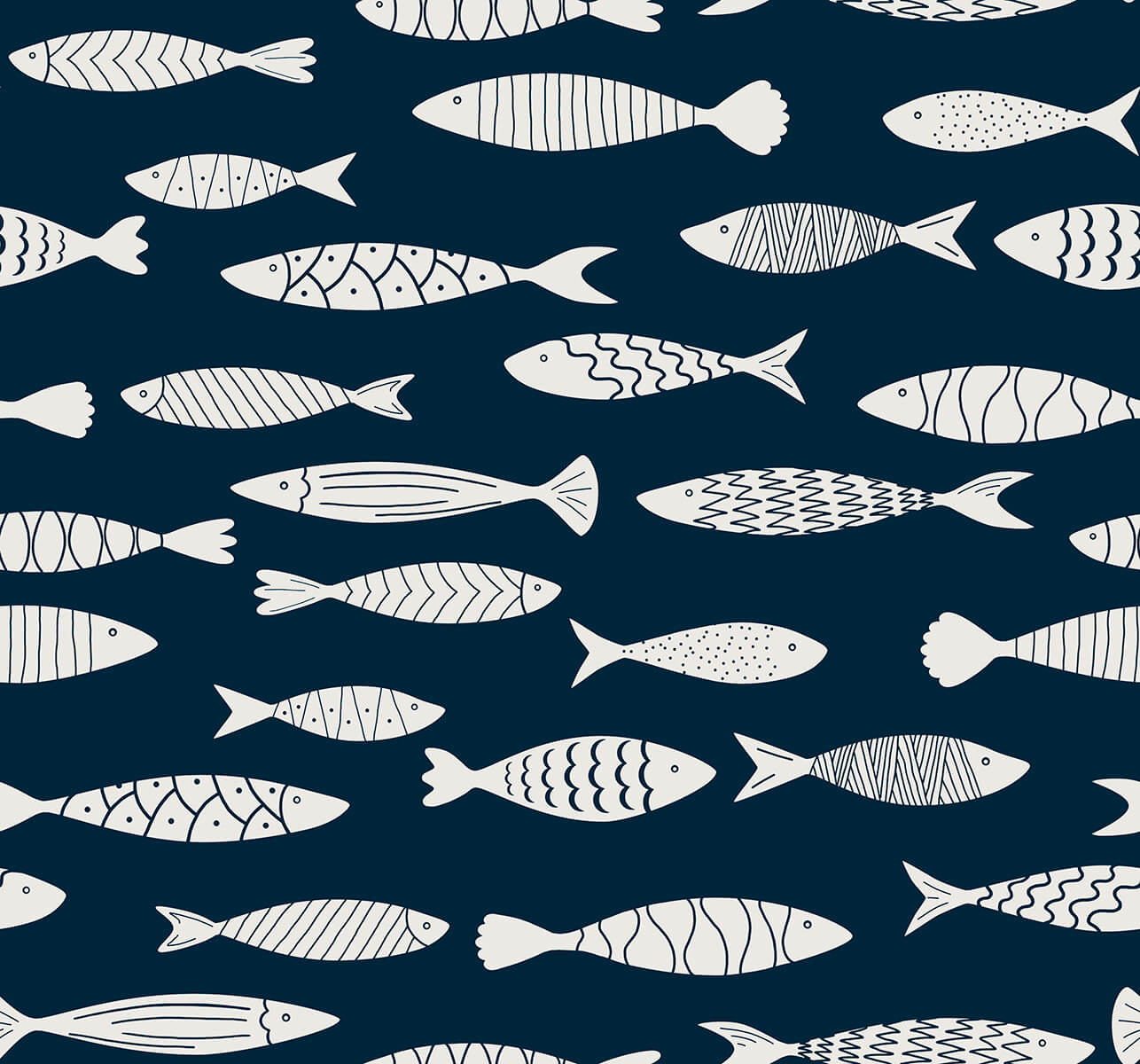 Seabrook Summer House Bay Fish Wallpaper - Deep Seas