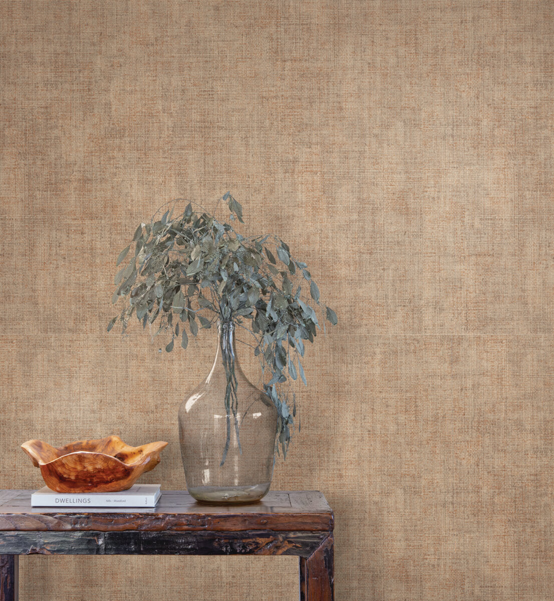 Alma's textured basketweave is the epitome of down-to-earth sophistication. Featured here in a warm terracotta and rust palette. This Alma Wallpaper measures approximately 39 inches wide by 32.8 feet long, measuring approximately 106.6 square feet per roll. California’s scenic vistas and luxurious, laid-back lifestyle inspires this sun-drenched collection of organic textures and breezy botanical designs.
