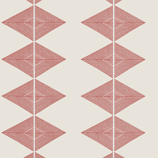 This diamond like motif evokes the natural beauty of mountain peaks reflected in a still lake. An organic color palette balances its bold, linear design, while the basalt black colorway reflects its contemporary appeal. Thibaut Vista is a warm and inviting collection of contemporary wallpaper inspired by nature's beauty. From geometrics reminiscent of mountainous peaks to graphic botanicals of flowering cacti, Vista evokes the excitement of the great outdoors in a modern way. The collection presents an earthy color palette.