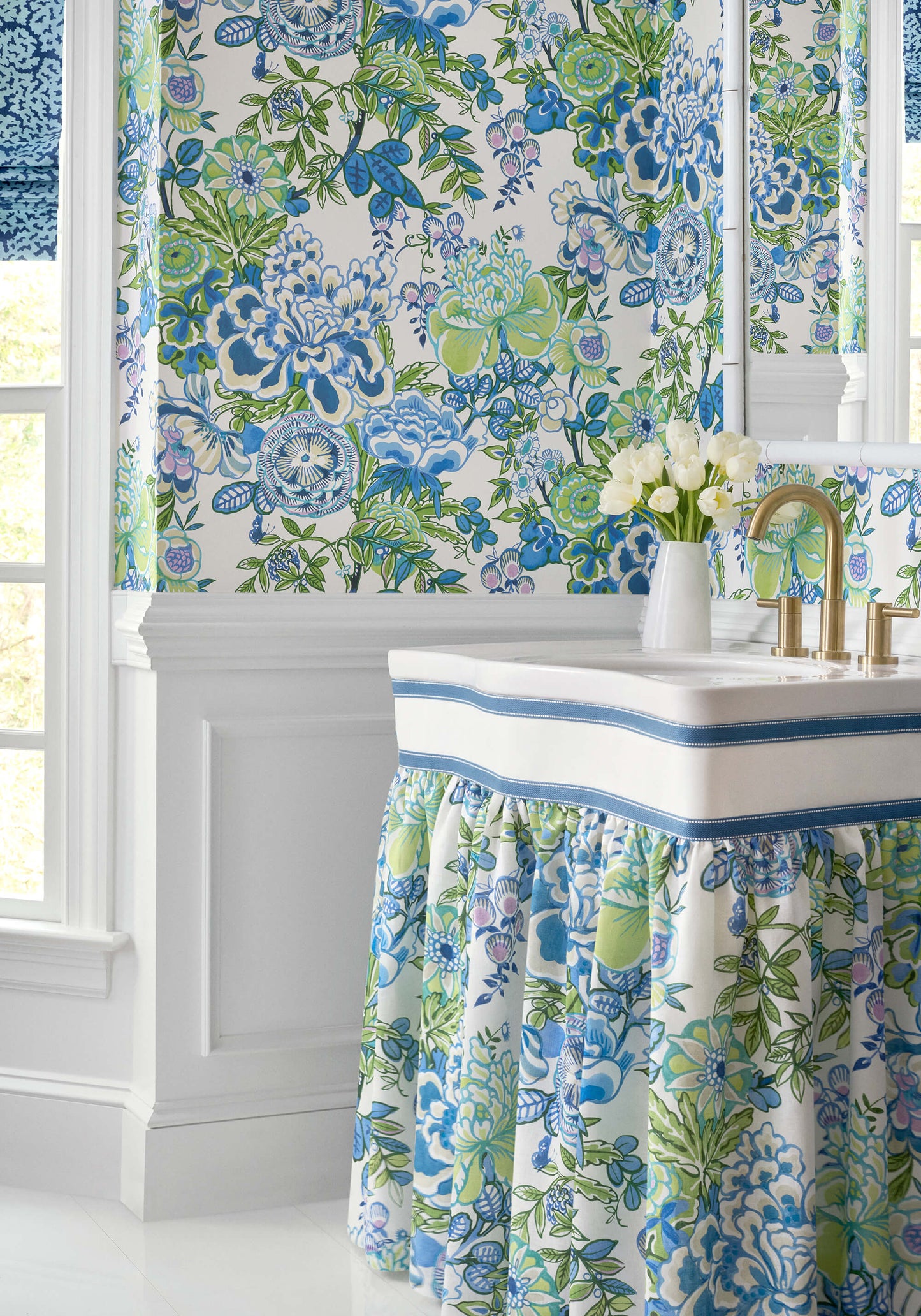 Thibaut Sojourn Peony Garden Wallpaper - Blue & Green