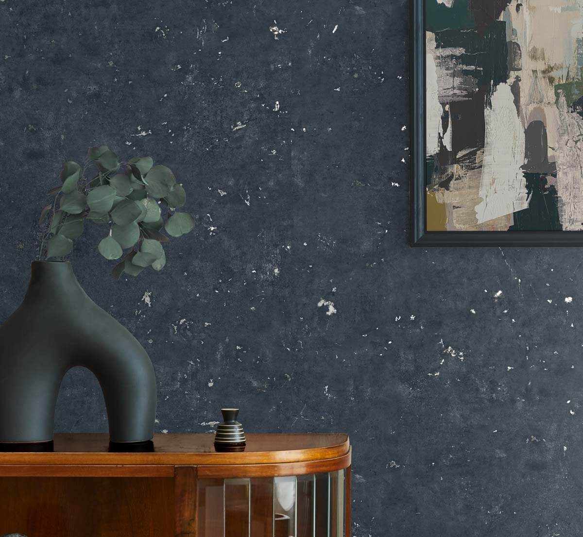 Seabrook Even More Textures Cement Faux Wallpaper - Storm Blue & Metallic Graphite