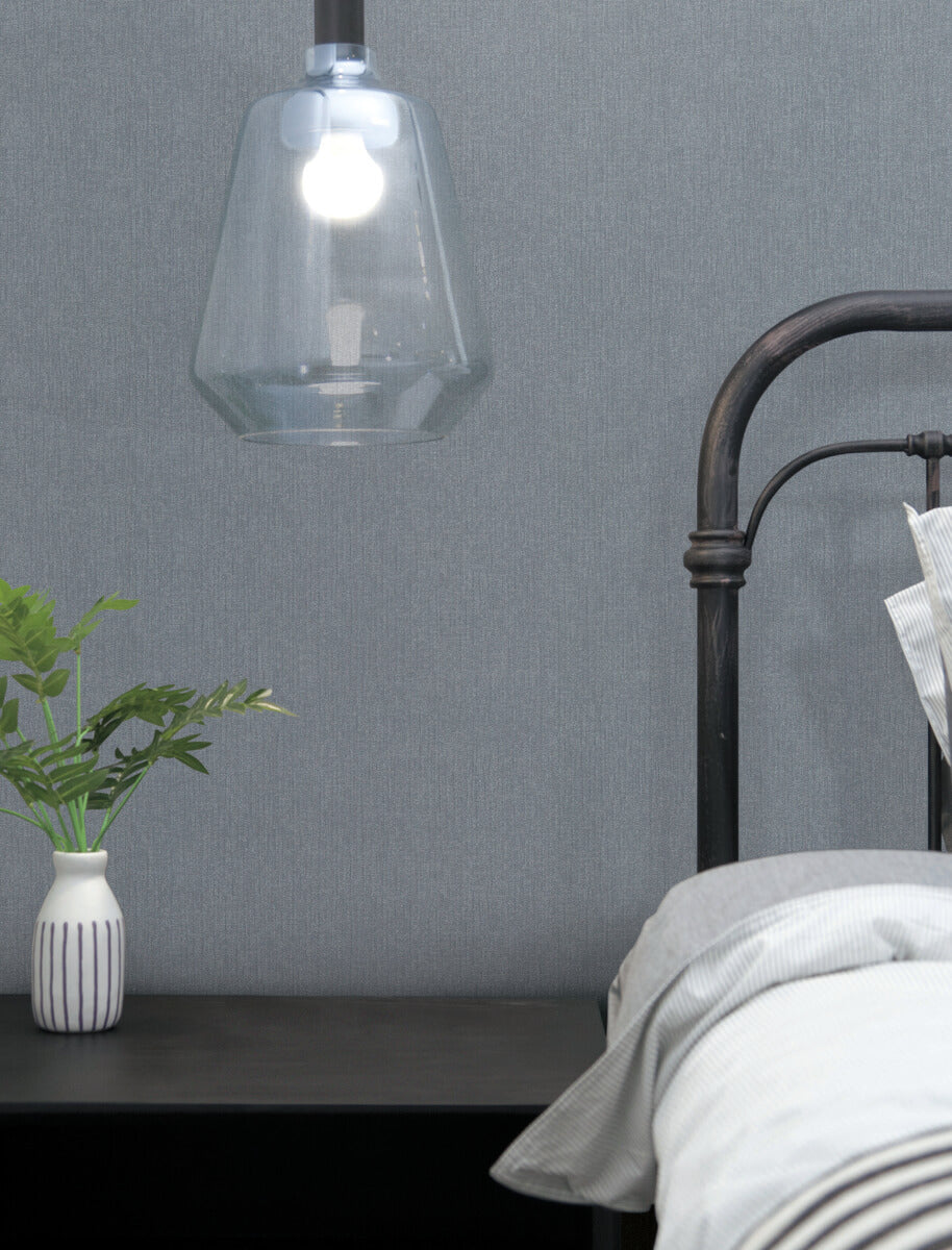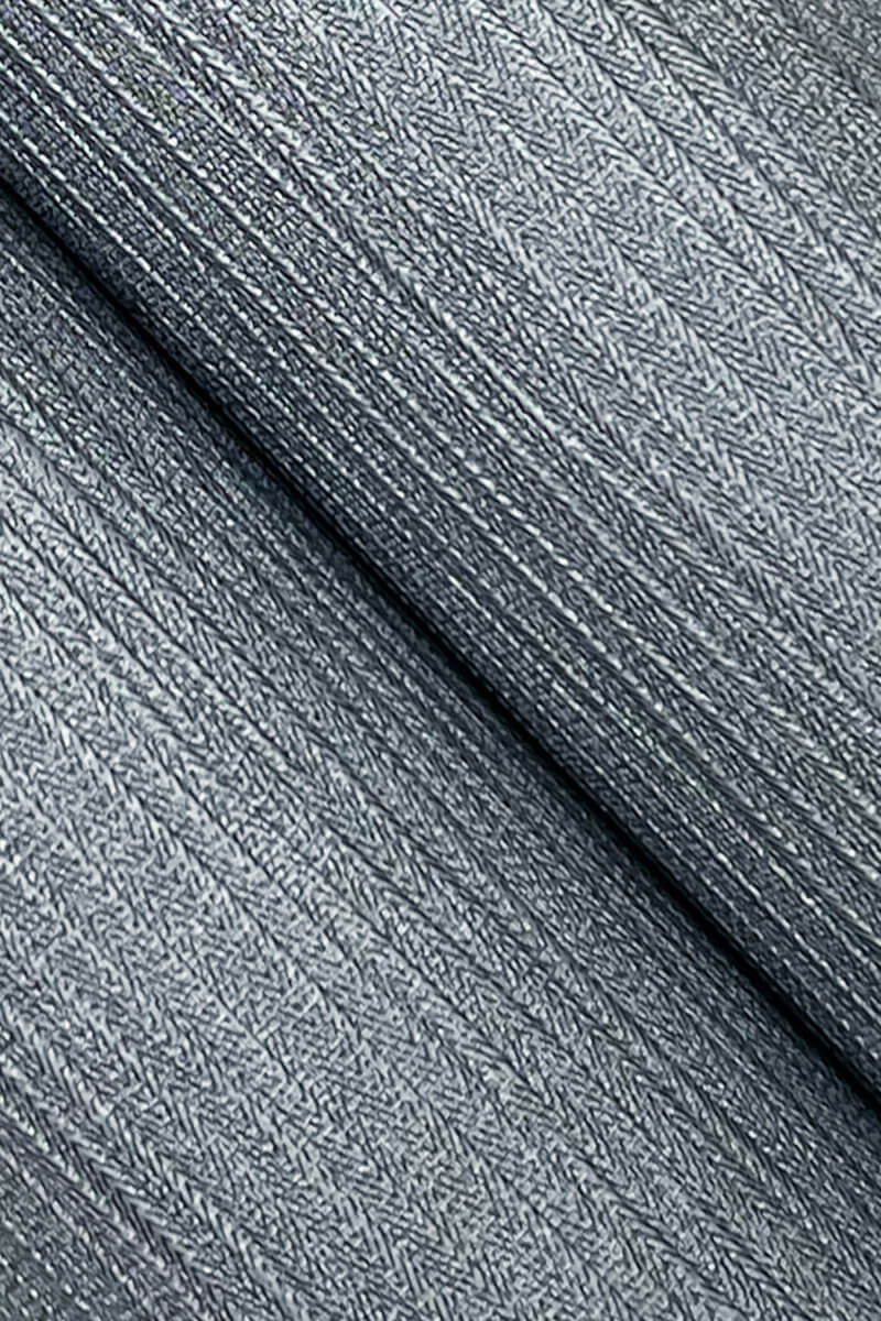 Handmade textural knit with pleating stitches inspires the irregular folds of Purl One, modernized with an update of monochromatic pearlescent sheen, shown in silvery denim blue. This Purl One Wallpaper measures approximately 26 inches wide by 30 feet long, measuring approximately 65 square feet per roll. The glamour of metropolitan life inspires this sophisticated collection of classic, geometric, and textural High Performance Type II products styled for residential and boutique commercial spaces.