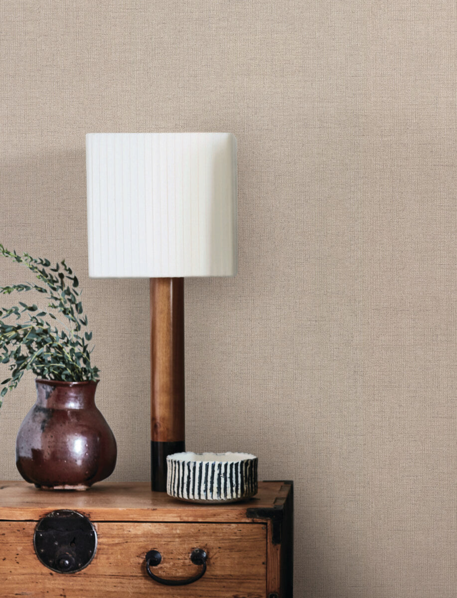 Hardy Linen combines industrial cloth's rugged warmth and soft gauze's simple elegance to create this contemporary classic of casual luxury, shown in jute beige. This Hardy Linen Wallpaper measures approximately 27 inches wide by 27 feet long, measuring approximately 60.8 square feet per roll. The glamour of metropolitan life inspires this sophisticated collection of classic, geometric, and textural High Performance Type II products styled for residential and boutique commercial spaces.