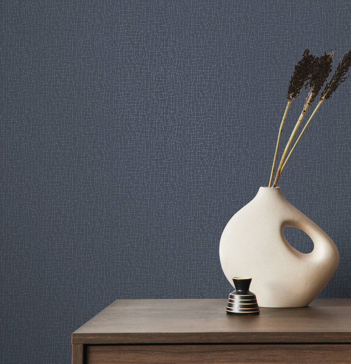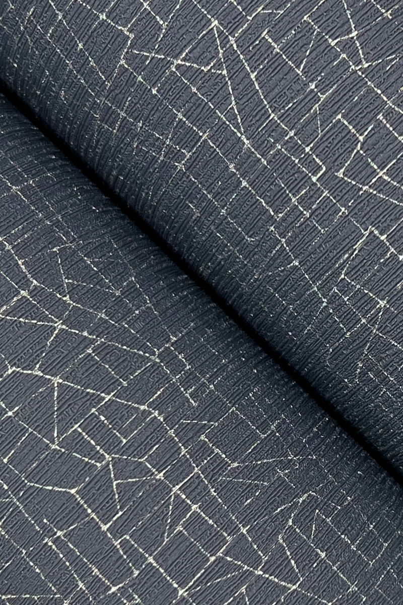 Exchange's small, unique, fractured lines feel like an artisanal installation rendered in burnished metallic against a textural plaster ground, shown in ink press blue with burnished metallic.. This Exchange Wallpaper measures approximately 27 inches wide by 27 feet long, measuring approximately 60.8 square feet per roll. The glamour of metropolitan life inspires this sophisticated collection of classic, geometric, and textural High Performance Type II products styled for residential and boutique commercial spaces.