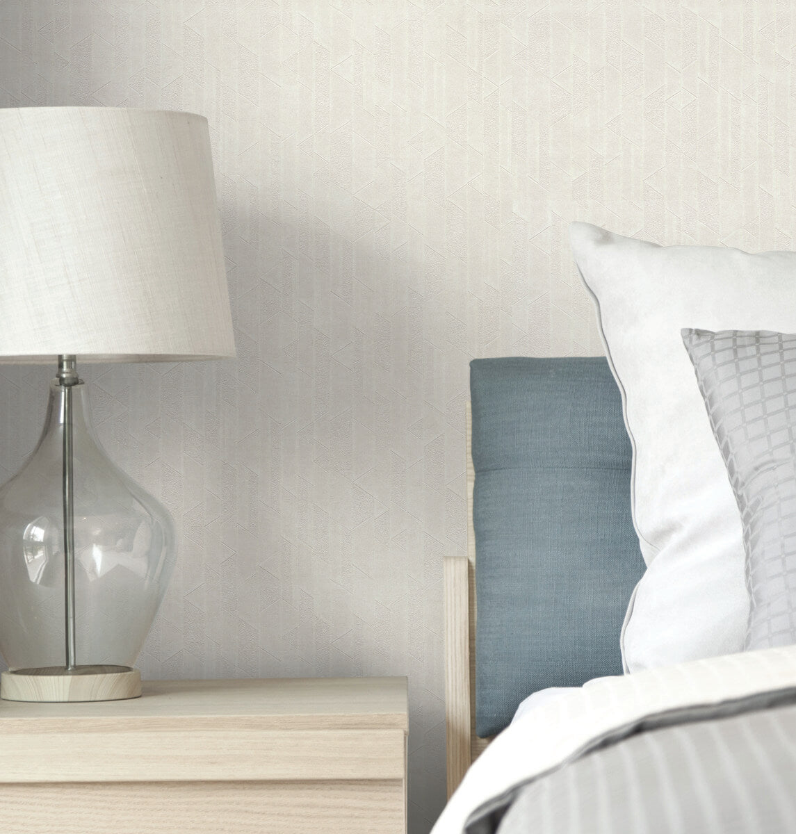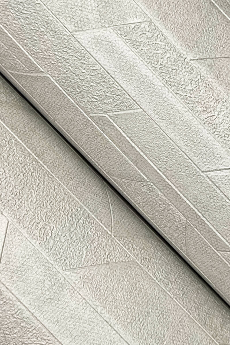 The distinctive patterning of Verge defines columns of alternating rough and smooth triangles and clean fold lines to create light play across a field of contemporary texture and color, shown in platinum light grey. This Verge Wallpaper measures approximately 27 inches wide by 27 feet long, measuring approximately 60.8 square feet per roll. The glamour of metropolitan life inspires this sophisticated collection of classic, geometric, and textural High Performance Type II products styled for residential and boutique commercial spaces.
