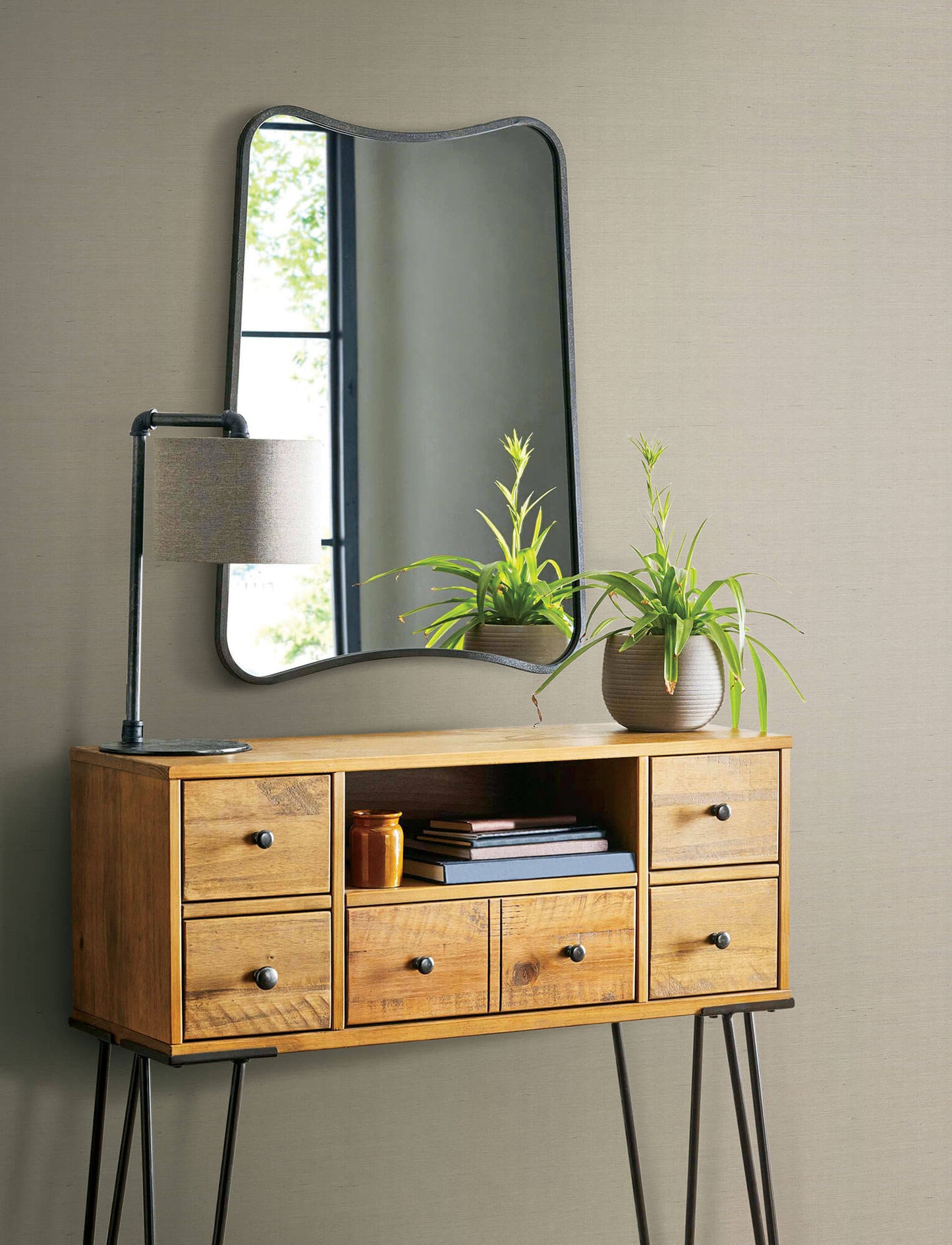 - Natural woven grasscloth wallpaper