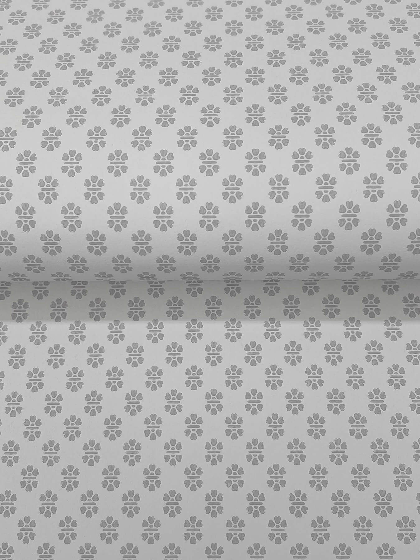 Petite floral stamps form dainty yet densely-clustered offset columns in pattern Brioni. Featured here in grey against creamy white. Brioni is an unpasted, non woven wallpaper measuring 27 inches wide by 27 feet long, covering approximately 60.8 square feet per roll. Celebrate the charm of garden life with the Antonina Vella Jardin wallpaper collection. Vintage-inspired block prints meet modern design in floral and leafy patterns that bring nature indoors.