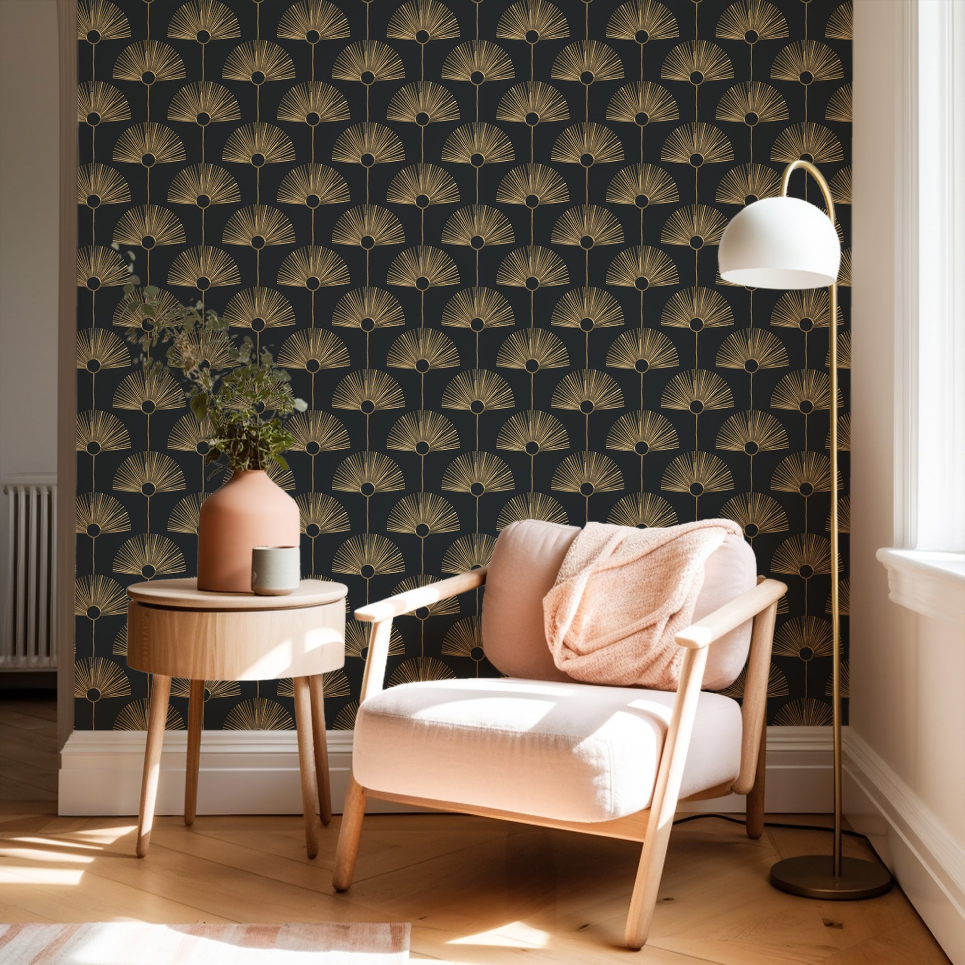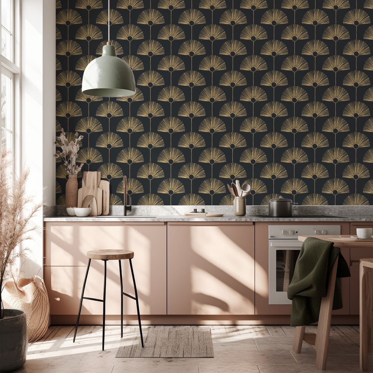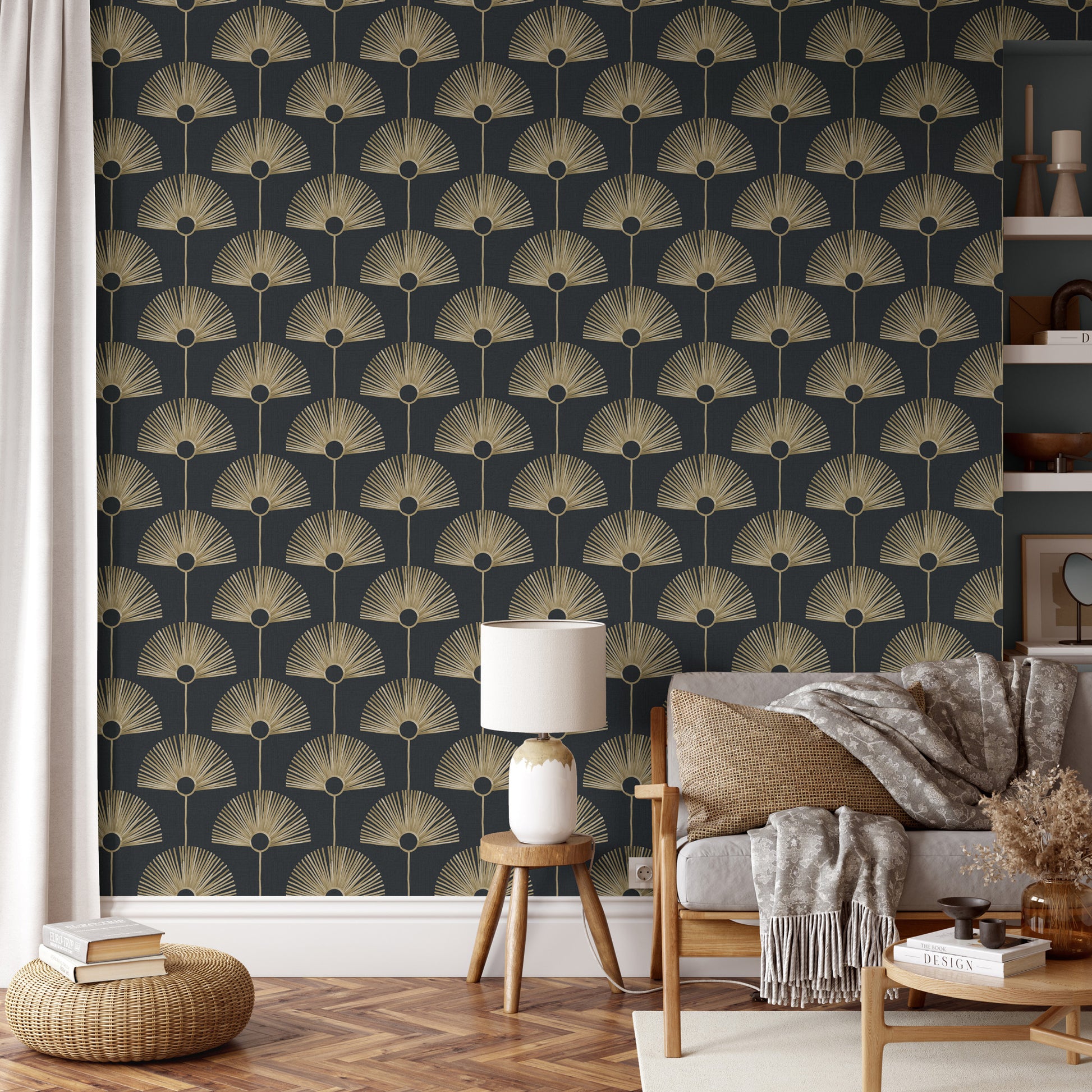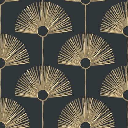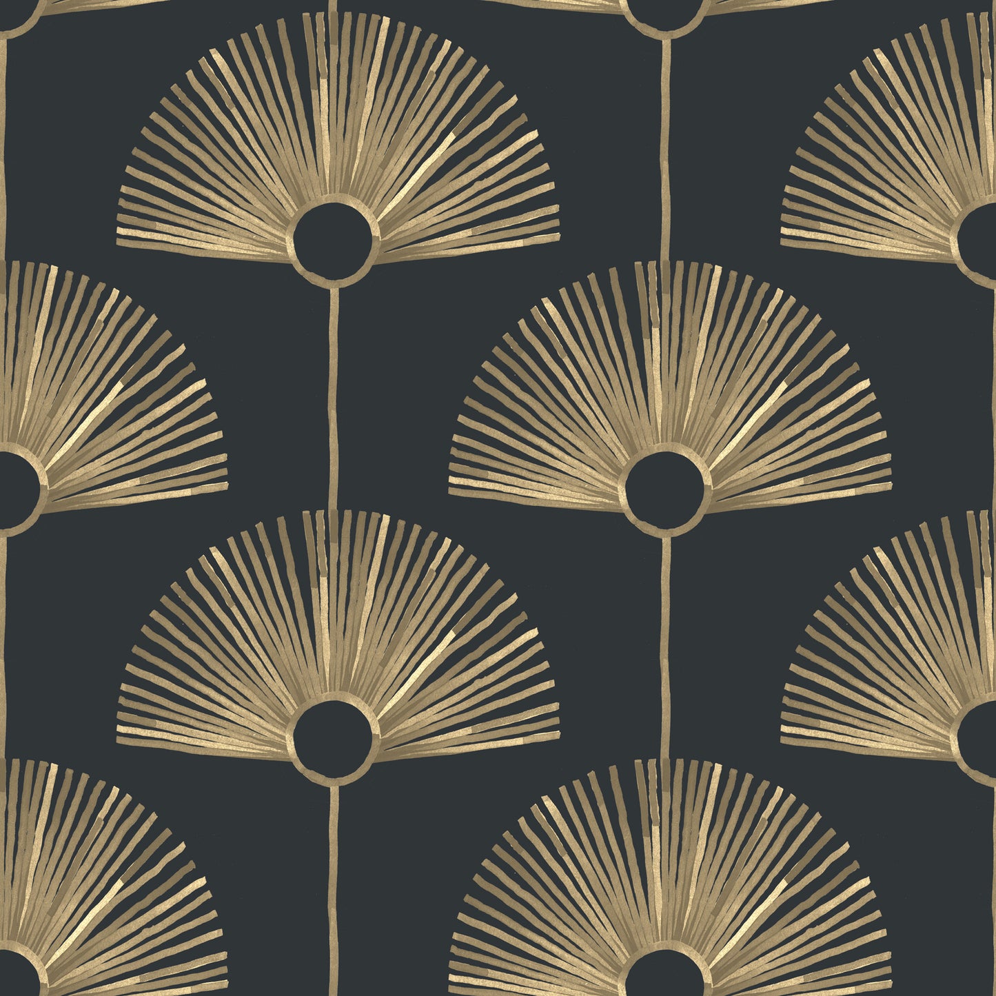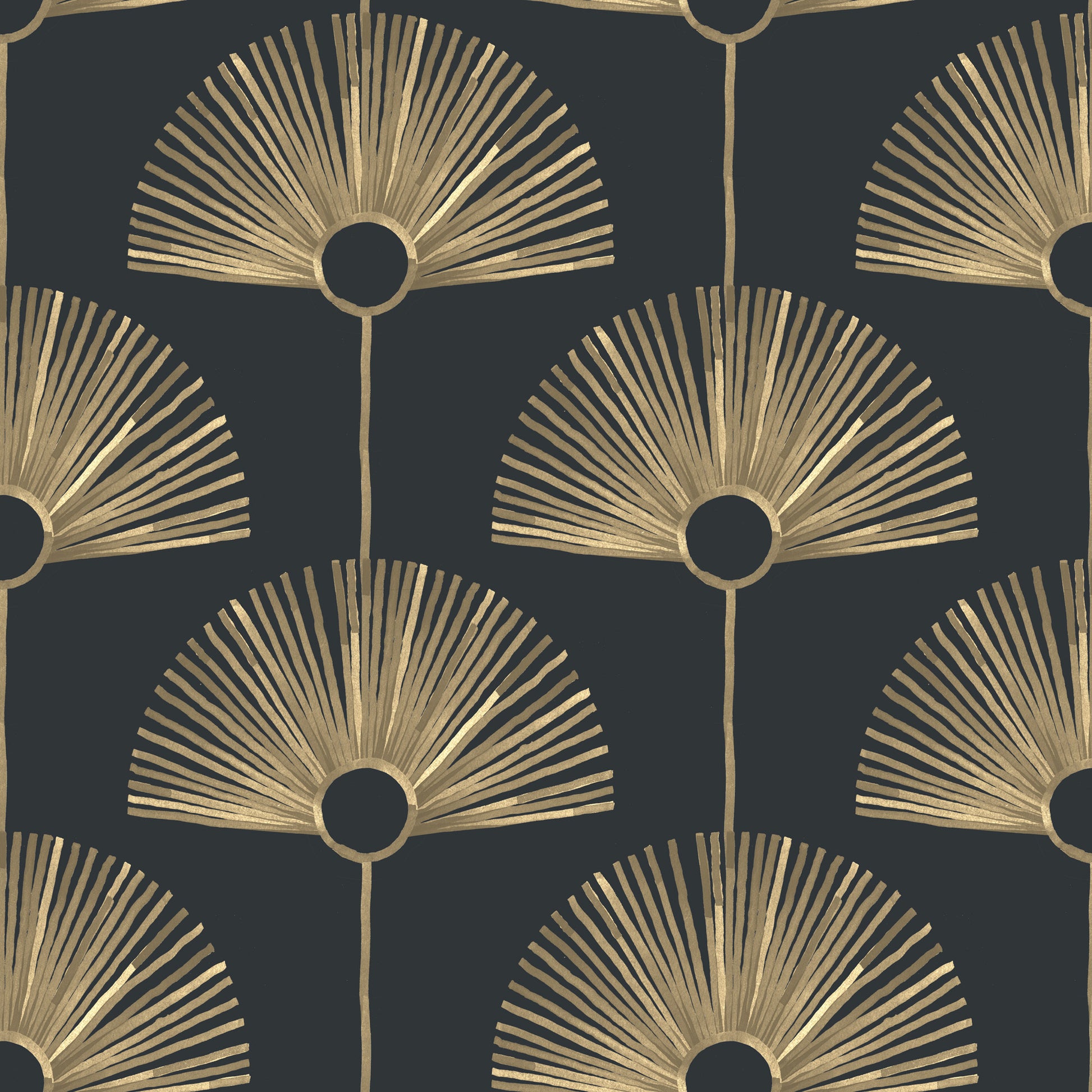 Mitchell Black Bohemian Bungalow Deco Fan Wallpaper - Black & Gold