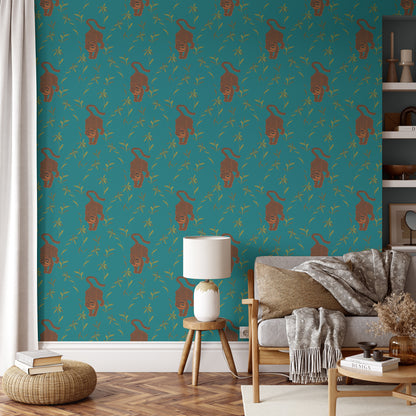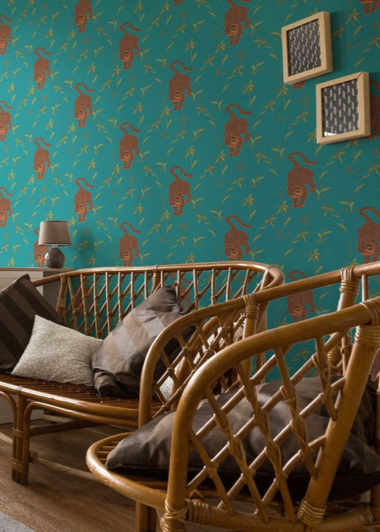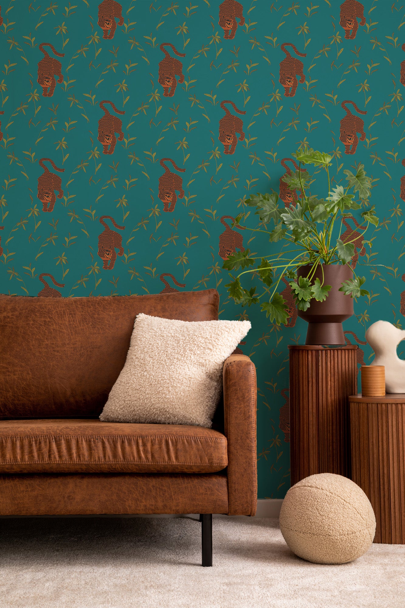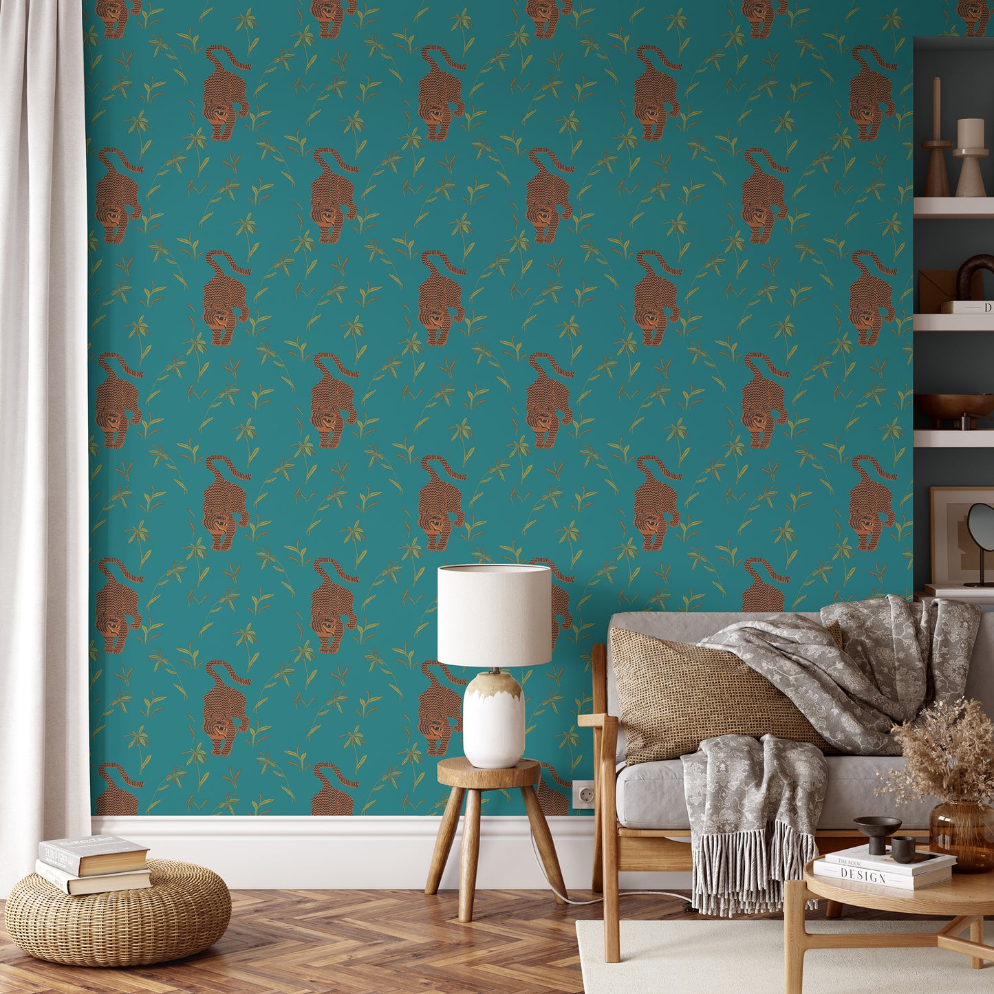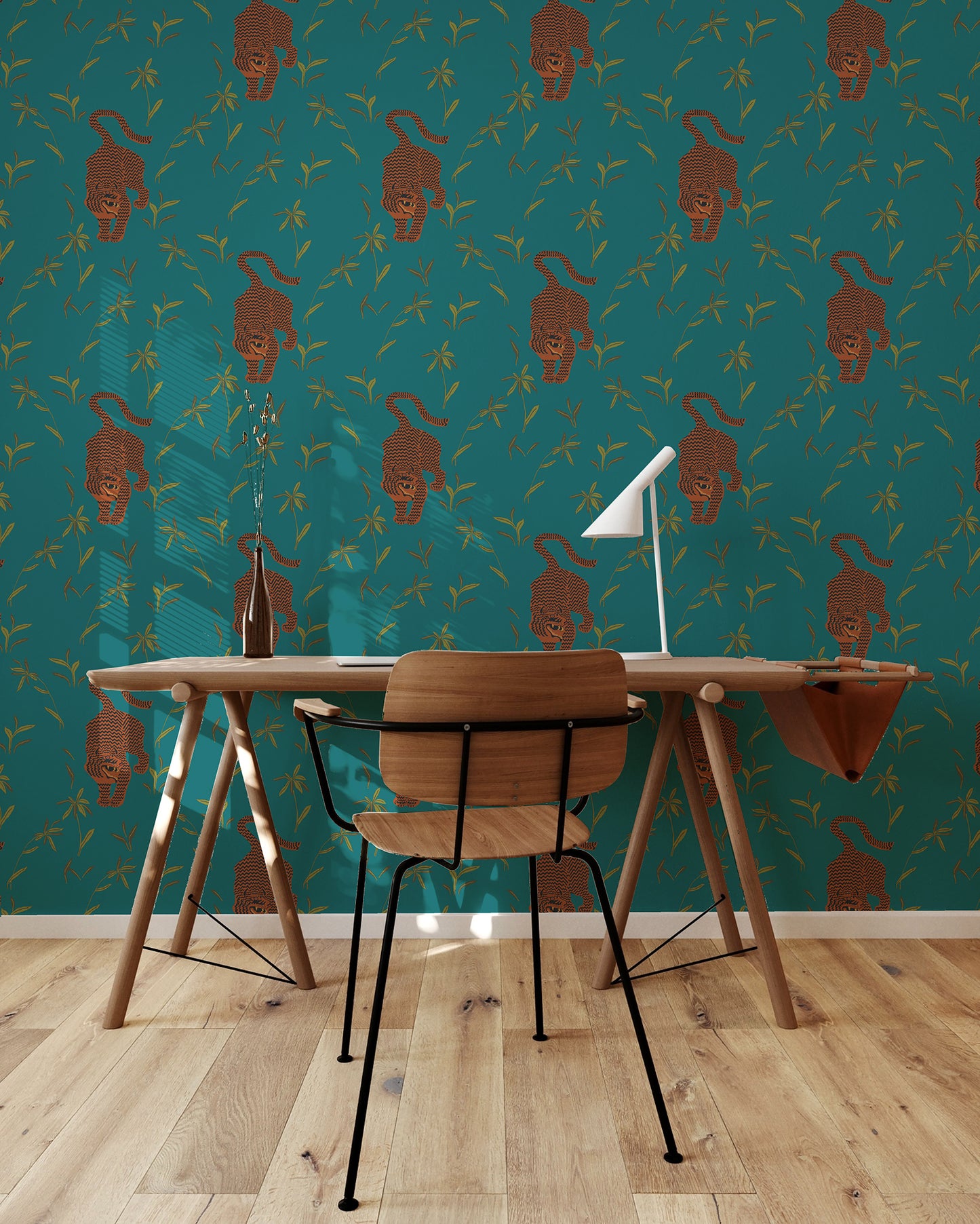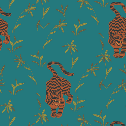 Derived from the captivating aesthetics of Tibetan tiger rugs, the "Stalking Tiger" wallpaper pattern showcases a striking block print design of tigers and grassland motifs, exuding a wild yet refined beauty. Since 2017, this pattern has been a top-selling sensation at Mitchell Black, adding a bold and stylish touch to a variety of settings. Try out this mesmerizing design and elevate your space to new heights with the "Stalking Tiger" wallpaper pattern. Bold, modern wallpaper designs by Mitchell Black. Explore artistic patterns, vibrant colors, and statement wall coverings made to elevate any space.