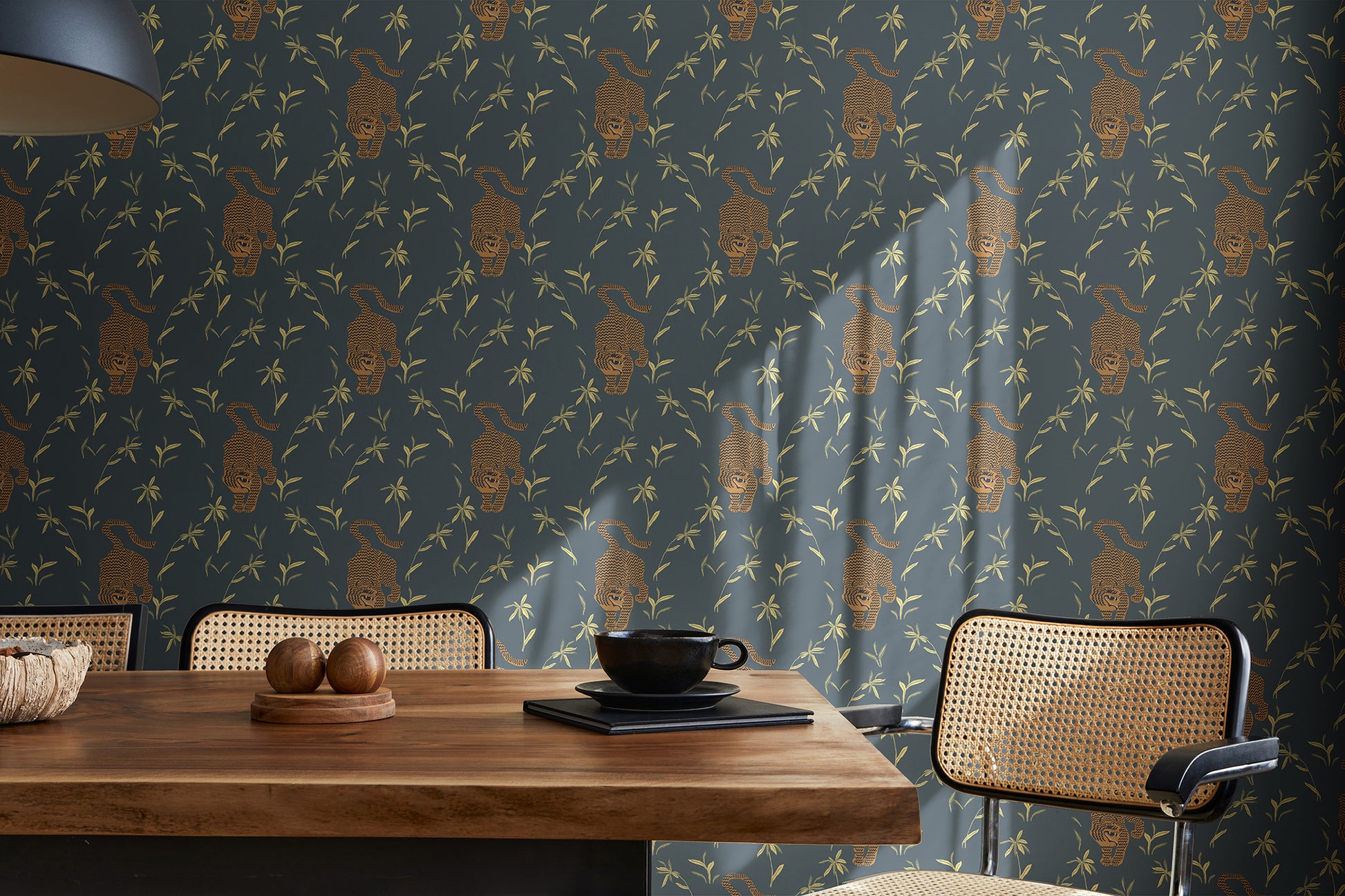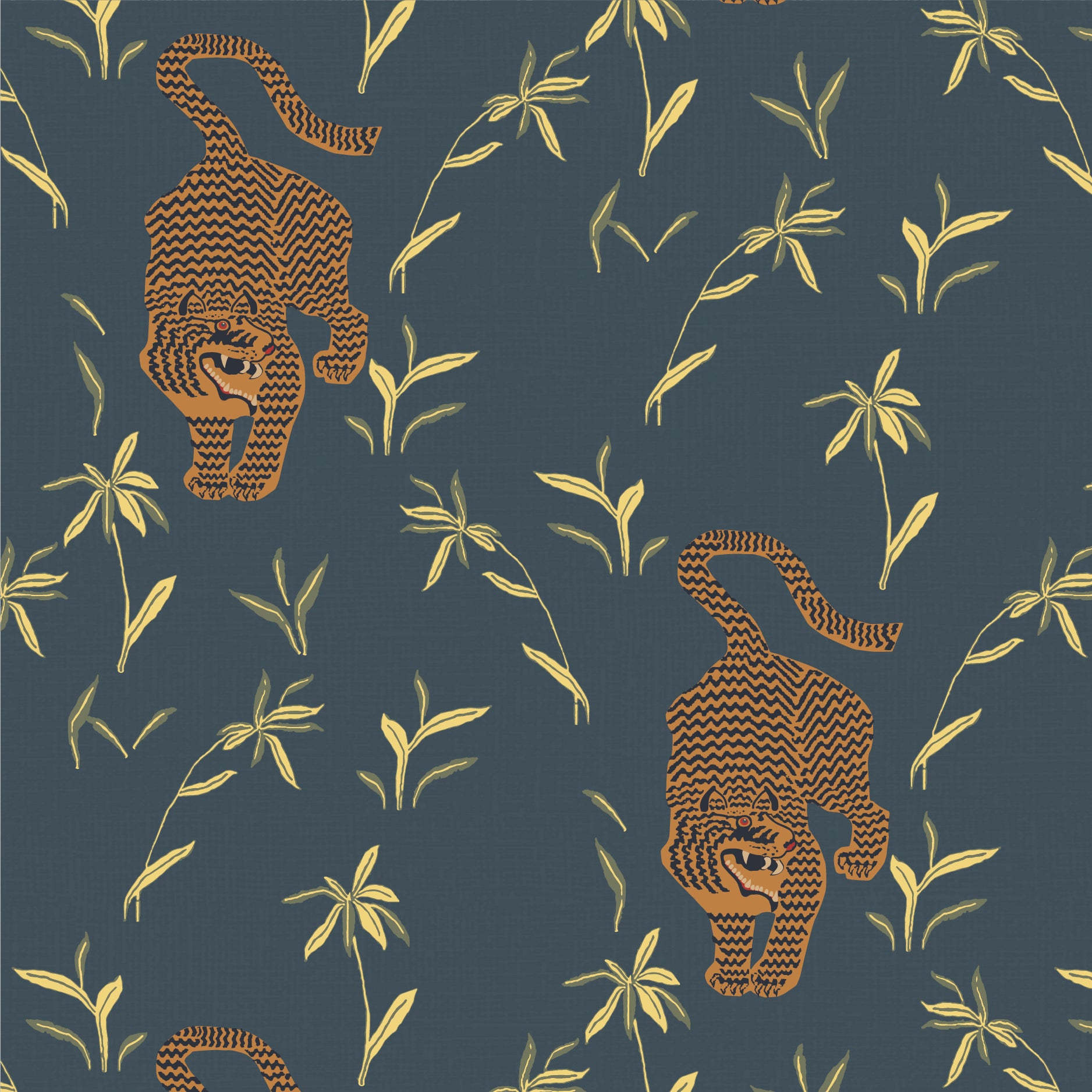 Derived from the captivating aesthetics of Tibetan tiger rugs, the "Stalking Tiger" wallpaper pattern showcases a striking block print design of tigers and grassland motifs, exuding a wild yet refined beauty. Since 2017, this pattern has been a top-selling sensation at Mitchell Black, adding a bold and stylish touch to a variety of settings. Try out this mesmerizing design and elevate your space to new heights with the "Stalking Tiger" wallpaper pattern. Bold, modern wallpaper designs by Mitchell Black. Explore artistic patterns, vibrant colors, and statement wall coverings made to elevate any space.