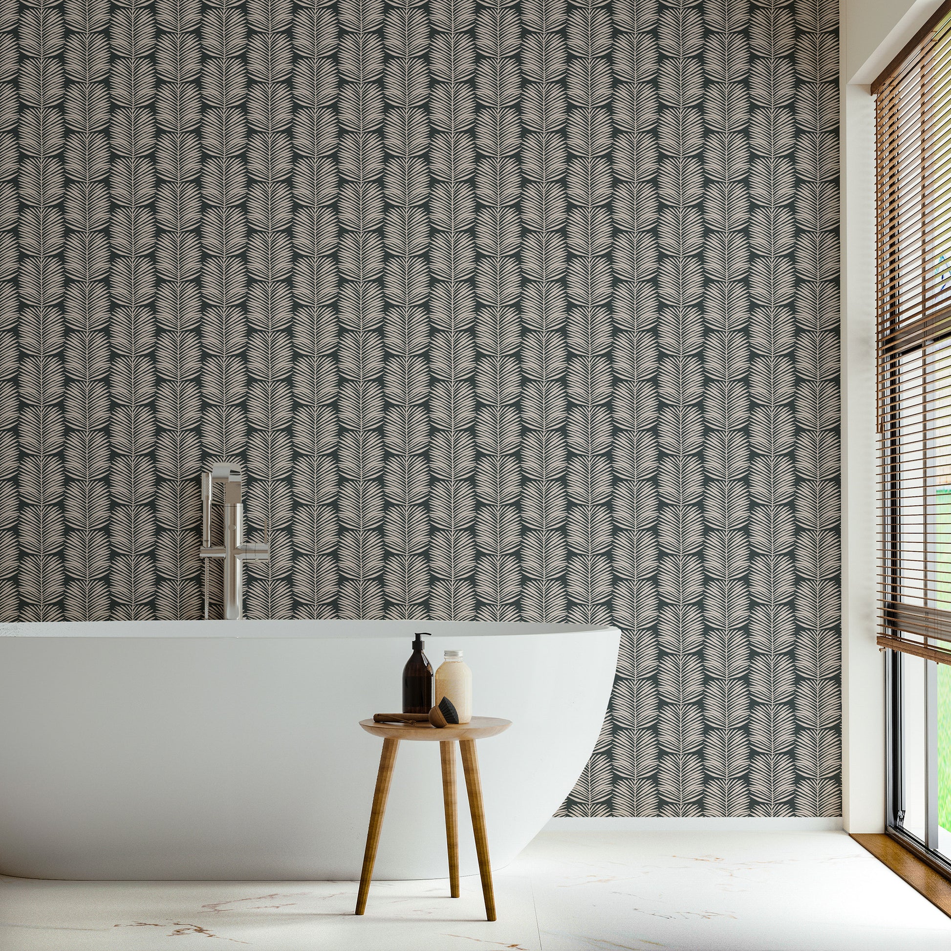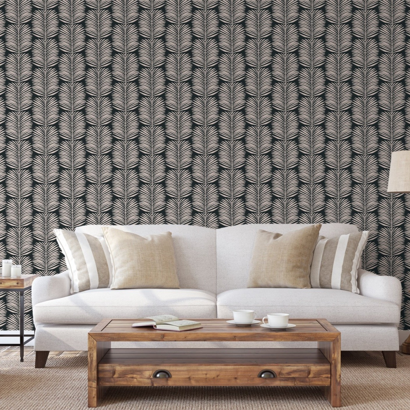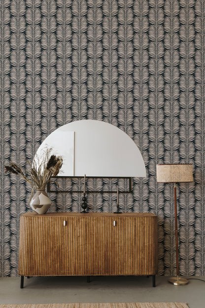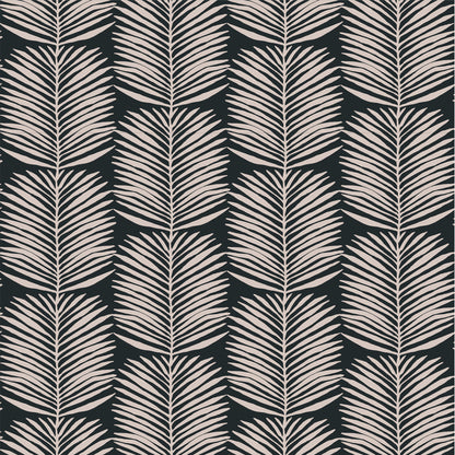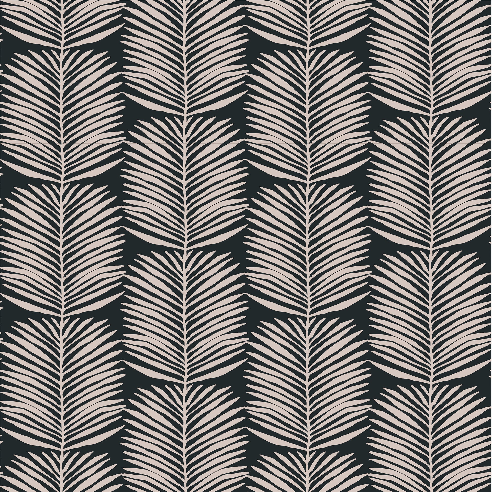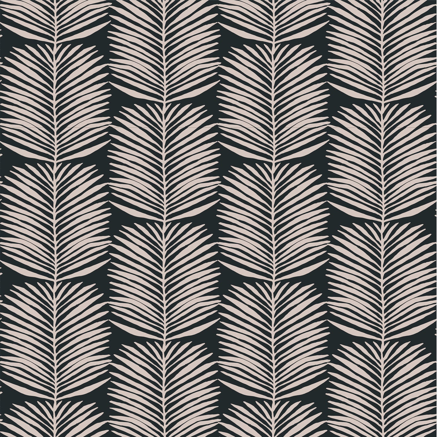 Mitchell Black Organic Betty White Palm Leaves Wallpaper - Black Blush
