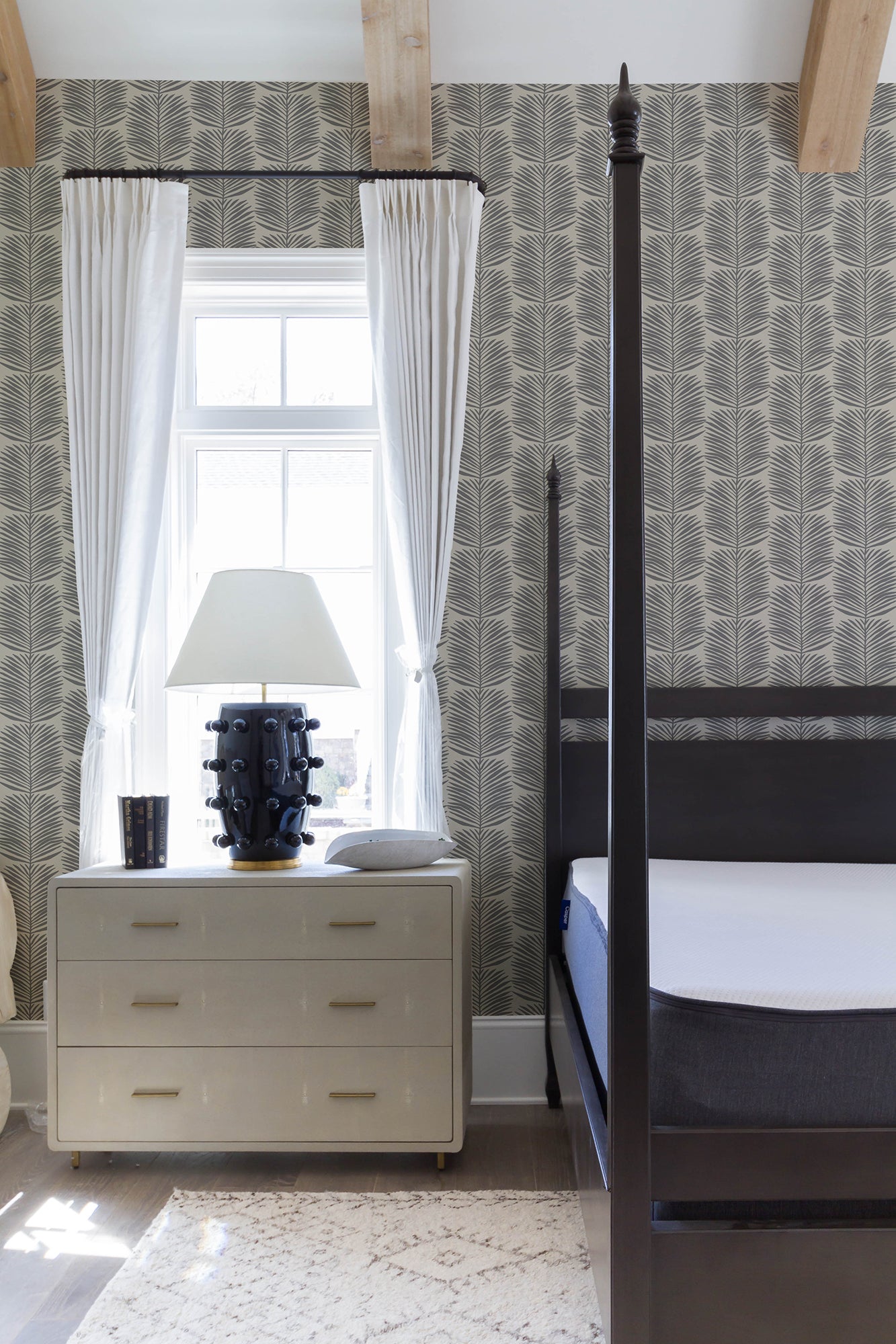 Palm Leaves wallpaper is a fresh and modern take on a classic nature-inspired design. With a simple repeating palm shape, this wallpaper adds a touch of the organic to your space in a geometric form. The mid-century vibe of this pattern brings some retro style yet feels perfectly at home in contemporary interior design. Bold, modern wallpaper designs by Mitchell Black. Explore artistic patterns, vibrant colors, and statement wall coverings made to elevate any space.